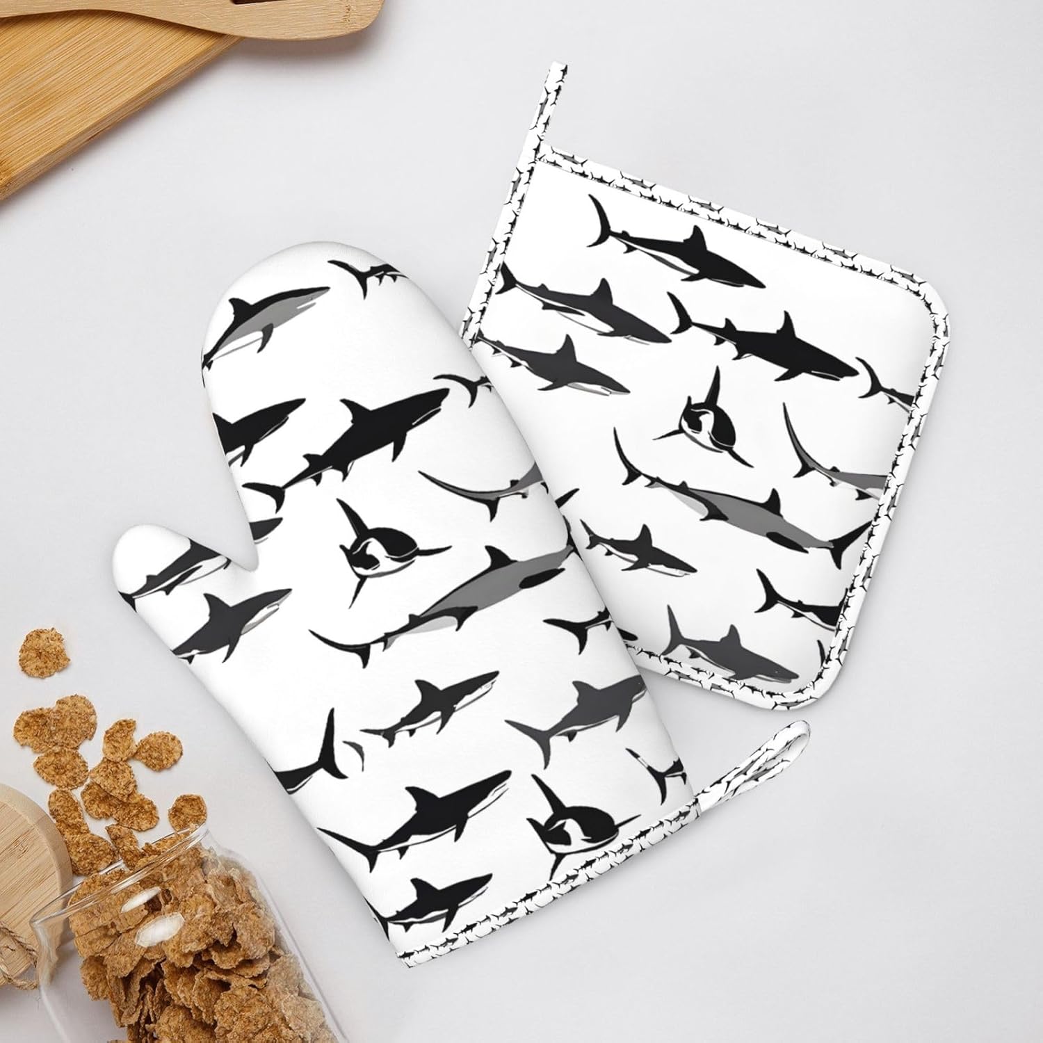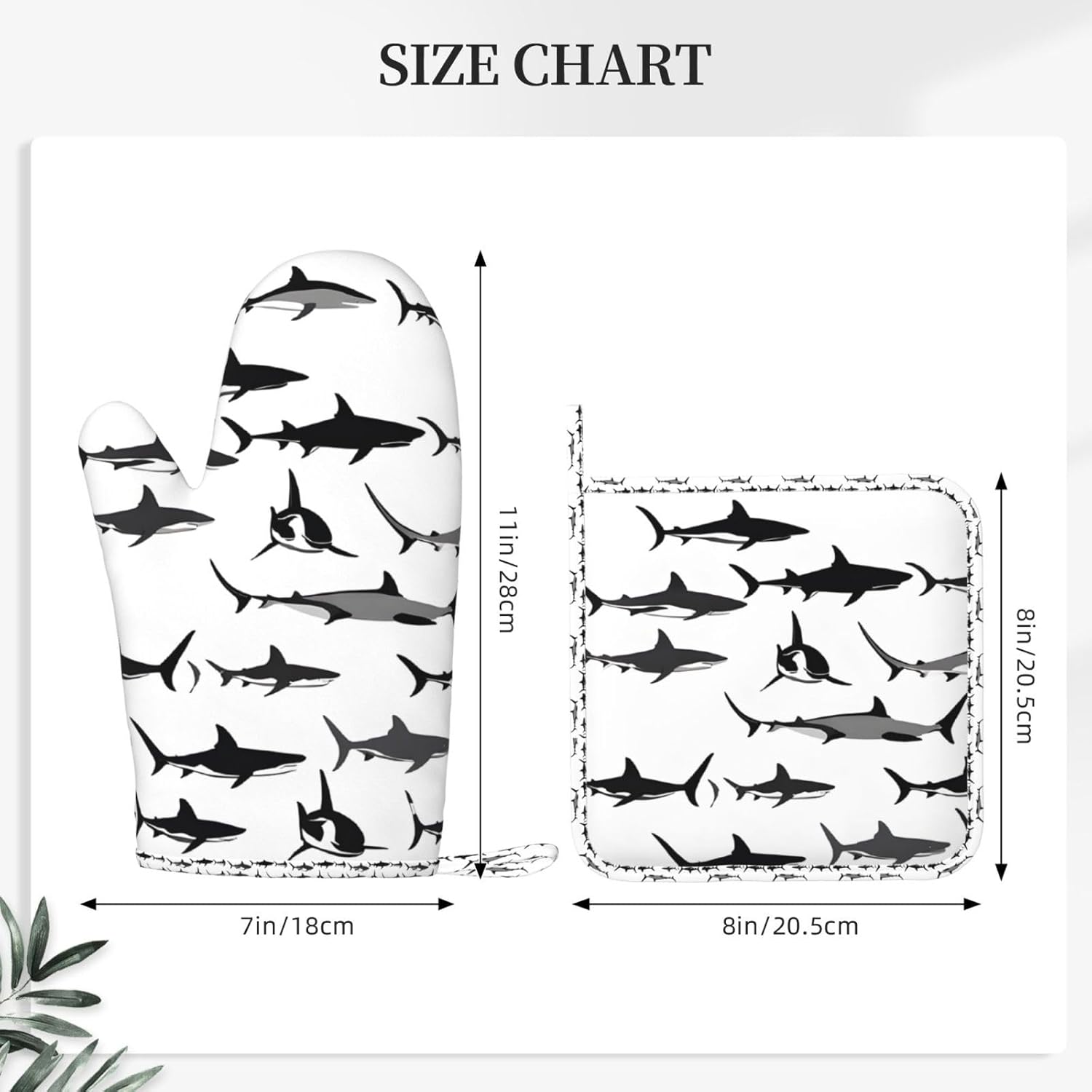 Product Name: Silicone Oven Mitts and Pot Holders Sets of 2Material Type: Made from high-quality polyester twill fabric and heat-resistant silicone materialsSize: Oven Mitts – 11 in x 7 in, pot holders – 8 in x 8 inPattern: sharks nautical About Our Oven Mitts and Pot Holders Sets: Product Features – Our oven mitts and potholders are meticulously crafted with superior fabric, offering exceptional heat resistance and durability. The palm features a non-slip silicone grip and ease of cleaning.Applicable Scenarios – Ideal for handling hot lids, dishes from the microwave or oven, and outdoor grilling. These mitts and potholders are perfect for all your cooking and baking needs.Accessory Structure – Equipped with a side hanging loop for easy storage. The set includes one right-hand glove and one potholder. Note: Slight variations in pattern placement are normal and do not affect the product’s functionality.Washing Instructions – Hand wash recommended. Do not machine wash or bleach.Special Note – Due to different measurement methods, the error in this size data within 1-2 cm is normal. Please Note: The product images are for reference only. Actual product may vary slightly due to production factors such as batch differences and machine settings. Minor variations in color, position, and size are normal and not considered defects. Thank you for your understanding! Customer Service: We want to make sure you have an amazing experience with us. Please contact us with any feedback you may have. We love to hear from you. We usually respond within 12-24 hours.