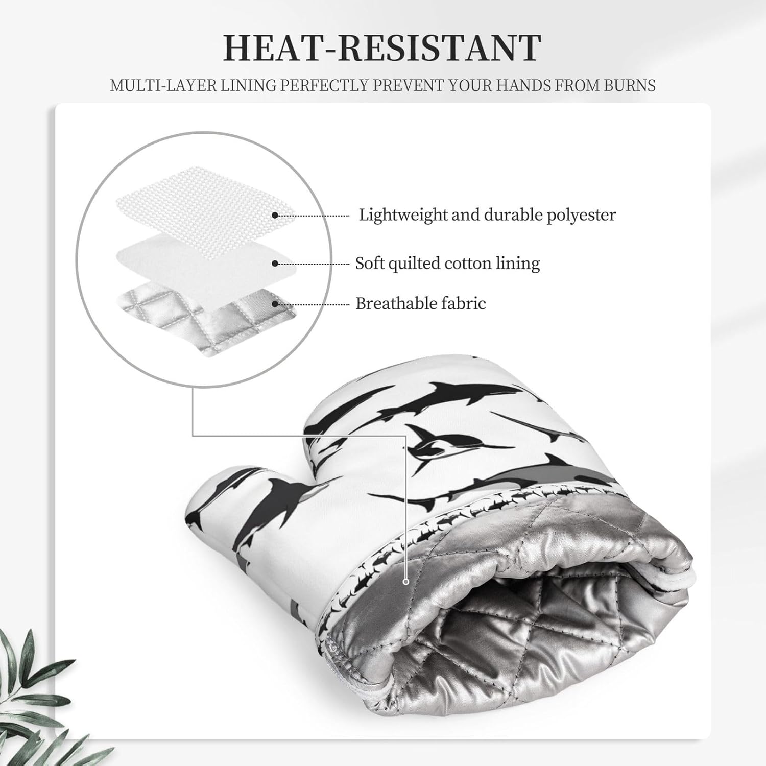 Oven Mitts and Pot Holders for Outdoor Cooking Baking BBQs Heat Resistant Polyester Silicone Oven Gloves Hot Pads, Kitchen Decor and Accessories Home Must Haves List – Sharks Nautical, Black