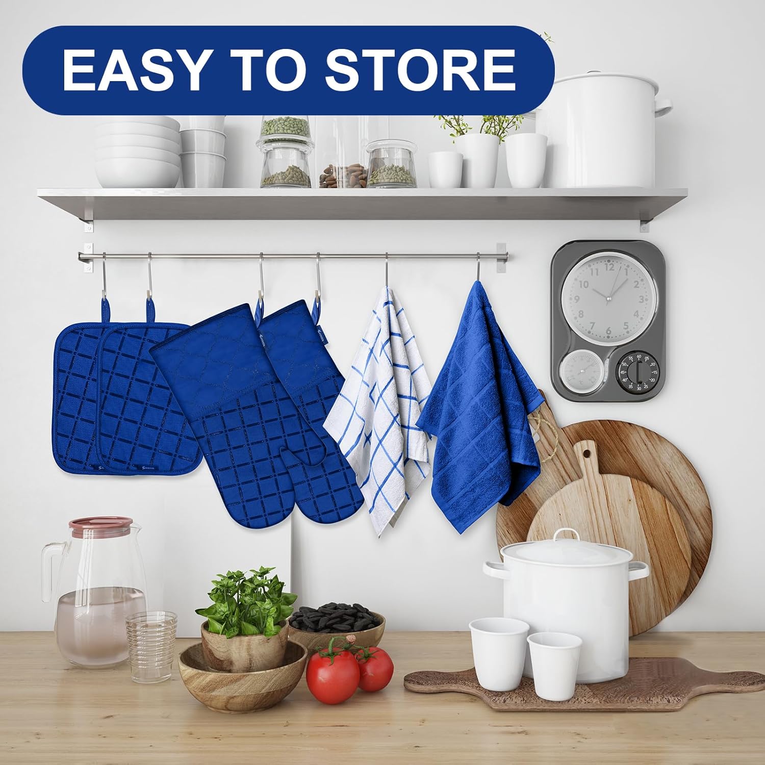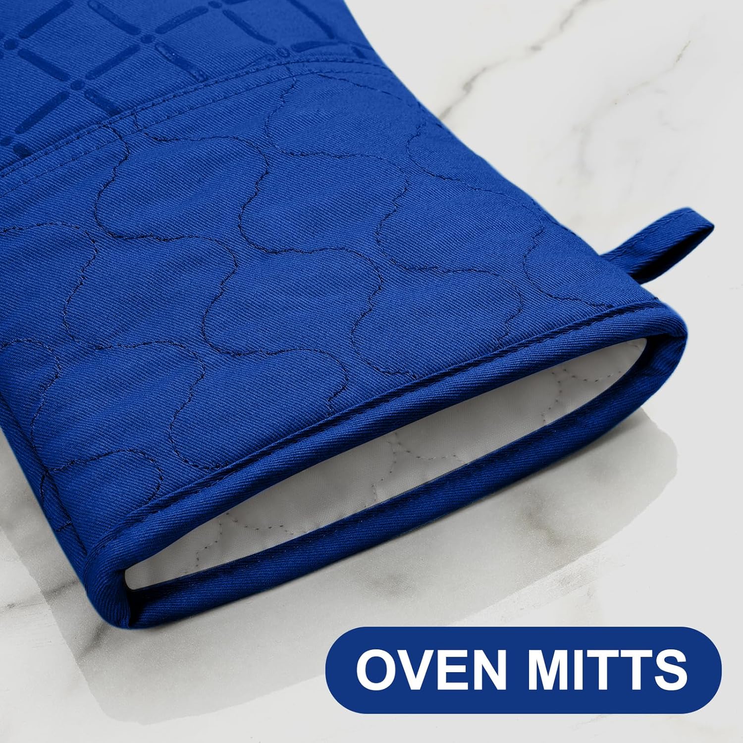 Oven Mitts Pot Holders Sets/Kitchen Towels and Dishcloths, Oven Gloves Kitchen Dish Towels 500 Degree Heat Resistant Potholders with Non-Slip Silicone Surface for Cooking, Grilling, Baking-Royal Blue
