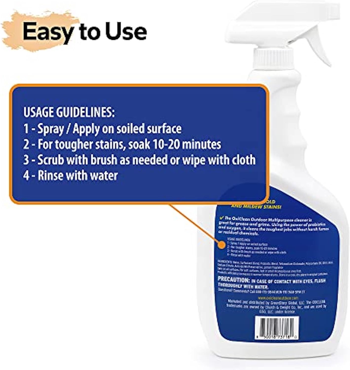 OxiClean – Outdoor Multipurpose Ready to Use – Cleaning Products – Cleaner for Concrete, Vinyl, Grill, Patio Furniture – Degreaser for Cement and Brick (32 Fl Oz Bottle)