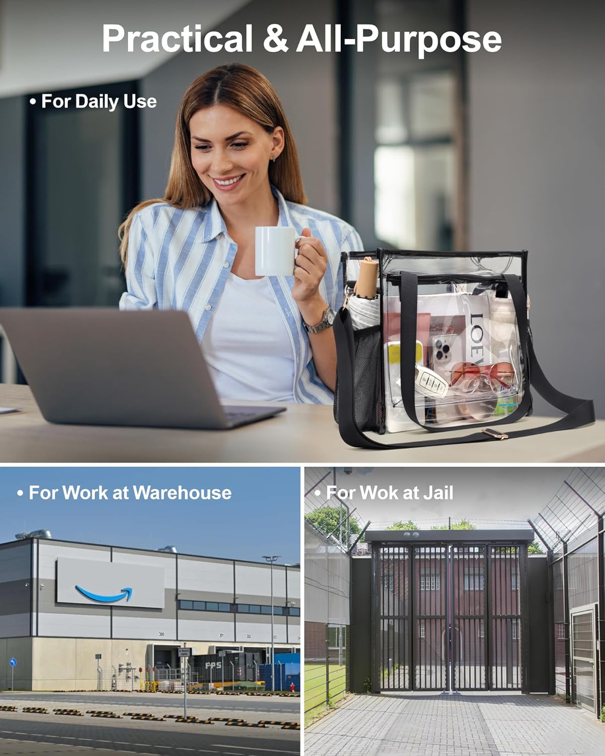 [Practical & All-Purpose] Our versatile clear PVC tote bag is a game-changer, not only perfect for sports events, concerts, but also ideal for daily use and work, especially secure area like jail, amazon,warehouse hospital and package pickup location