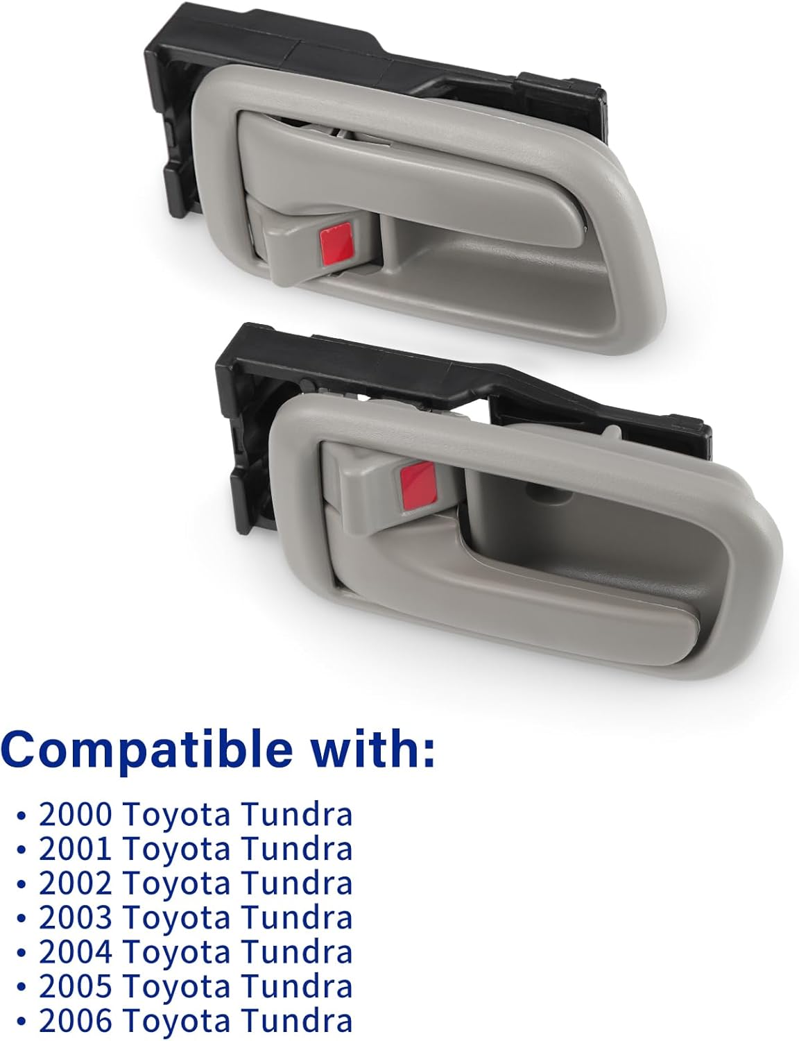 Note: Fit (Regular/Standard/Extended Cabs ONLY, not for Crew Cabs ) for Toyota Tundra 2000 2001 2002 2003 2004 2005 2006, front inner door handles with trim. Works just like OEM, half the price.