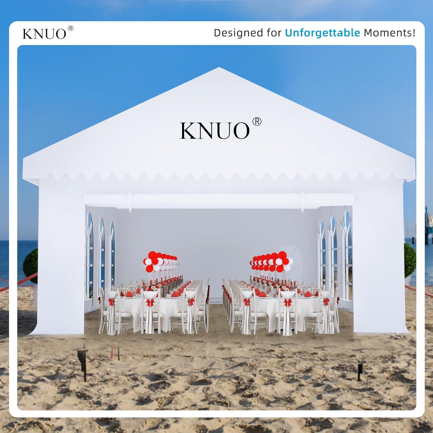 KNUO’s party tent exclusive 2024 design church-style windows add an elegant and warm touch to your event. PVC windows, along with easy access zippered doors, this party tent seamlessly blends style and functionality