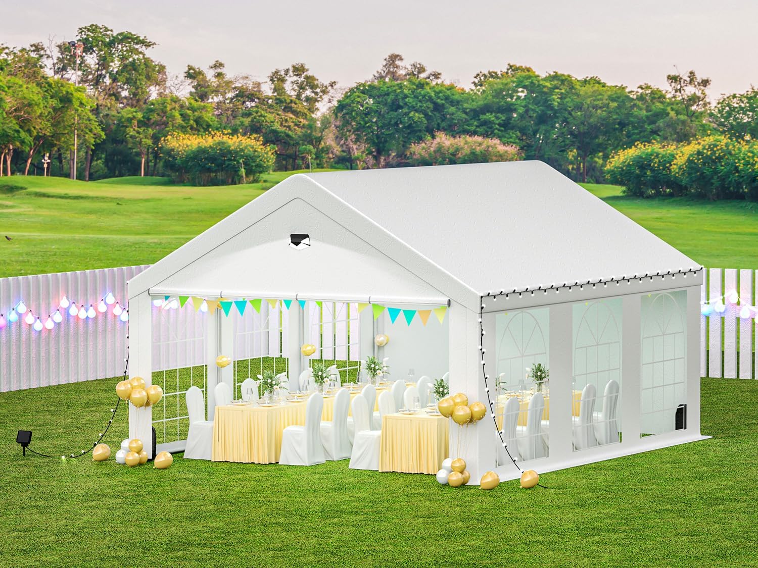 Party Tent – 20x20FT Heavy Duty Canopy Tent with Removable Sidewalls,2 Box Outdoor Waterproof Patio Camping Gazebo Shelter,Perfect for Wedding Holiday Birthday BBQ Backyard Evening Tent