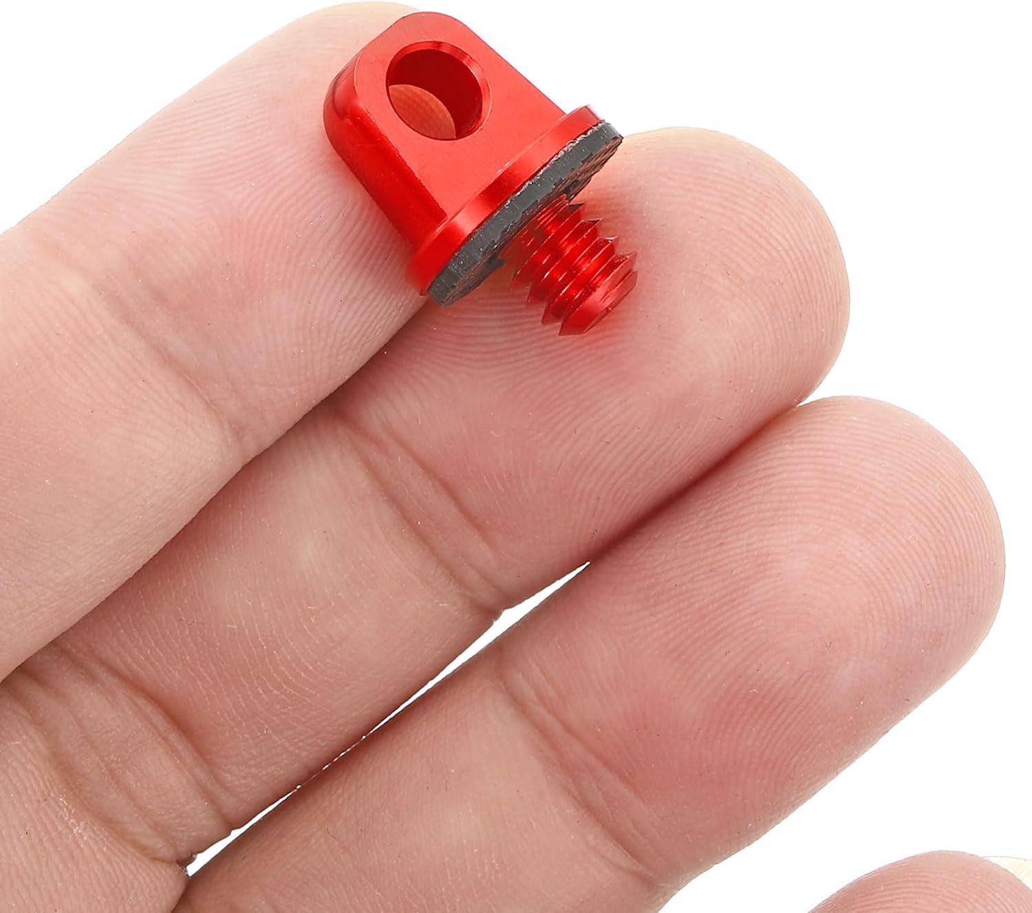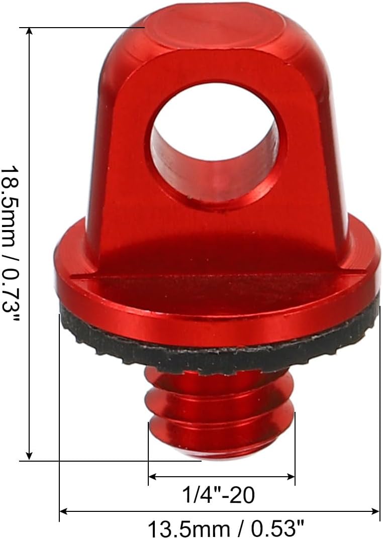 Color: Red; Material: Aluminum Alloy; Thread Size: 1/4″-20; Thread Length: 6mm / 2.24‘’; Overall Size: 18.5 x 13.5mm / 0.73 x 0.53″ (L*D); Packing List: 2 x Camera Screw Holders