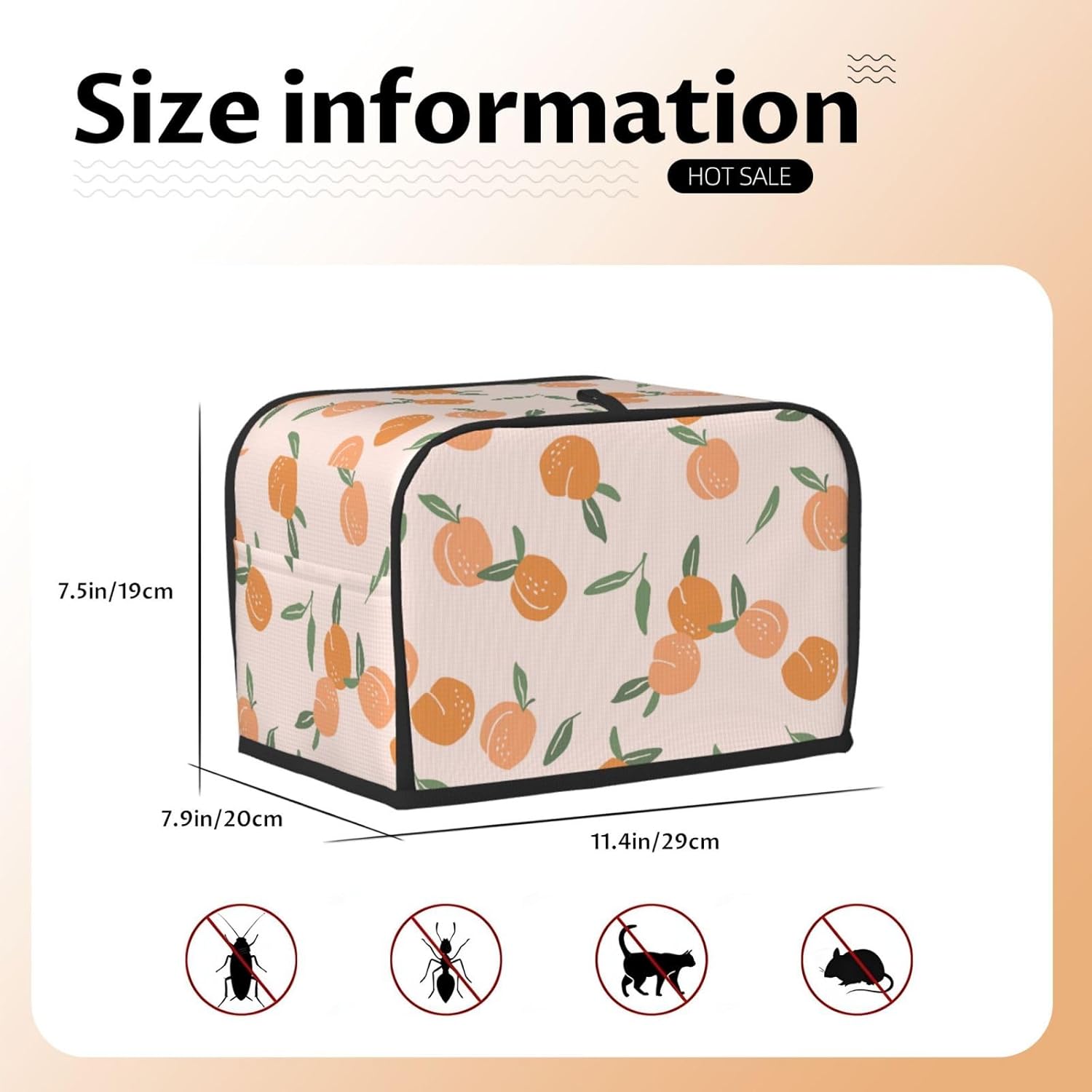 Peaches 2 Slice Toaster Cover, Appliance Cover with Hang Loop Toaster Dust Cover Waterproof Kitchen Home Decor Gifts
