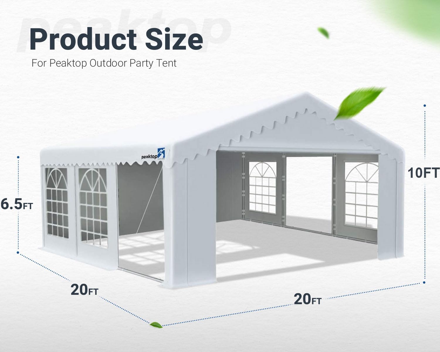 PEAKTOP OUTDOOR 20×20 Party Tent Heavy Duty Wedding Tent Event Shelter Outdoor Carport Gazebo Commercial Tent Rental Canopy carpas para Fiestas for Backyard Party with Carry Bags&Ground Bars