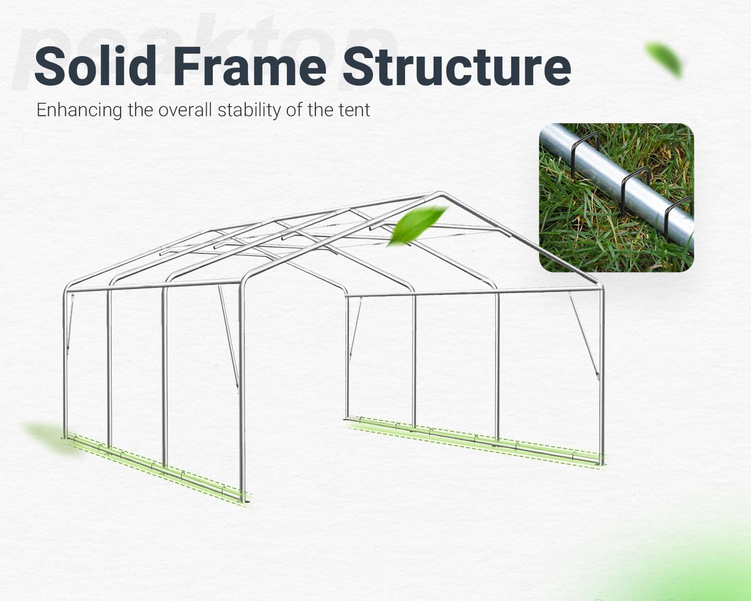 🎈【Top Triangle Structure&Reinforced Ground Bar】Increases bearing across the top and making the 20×20 heavy-duty party tent much more stable & Firm.
