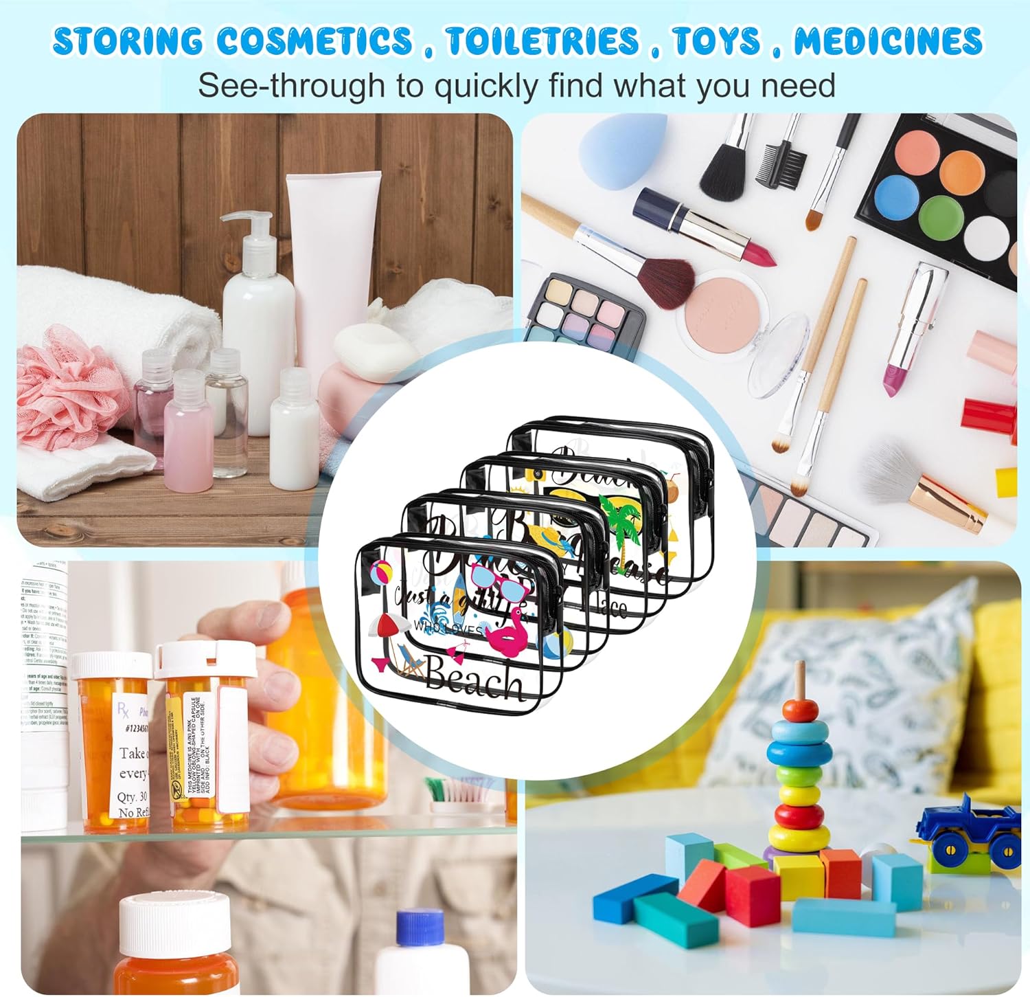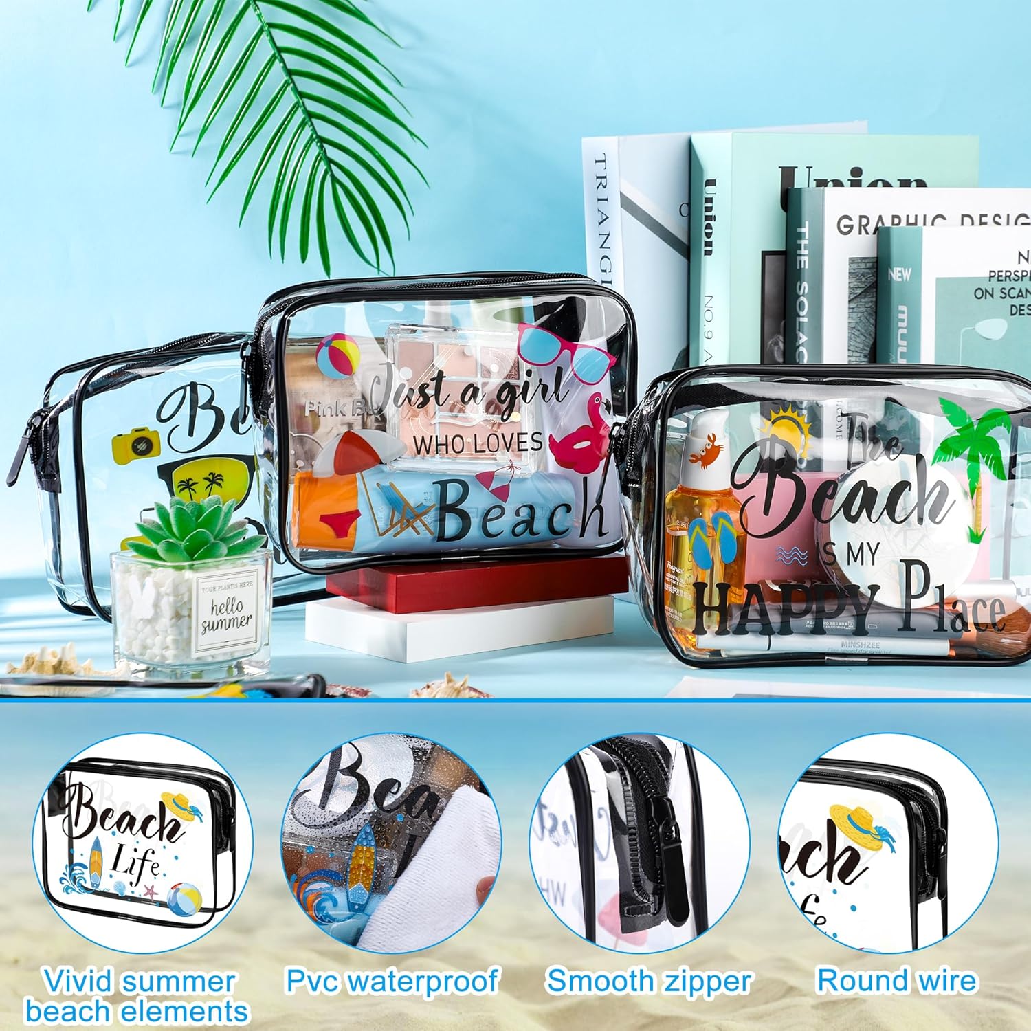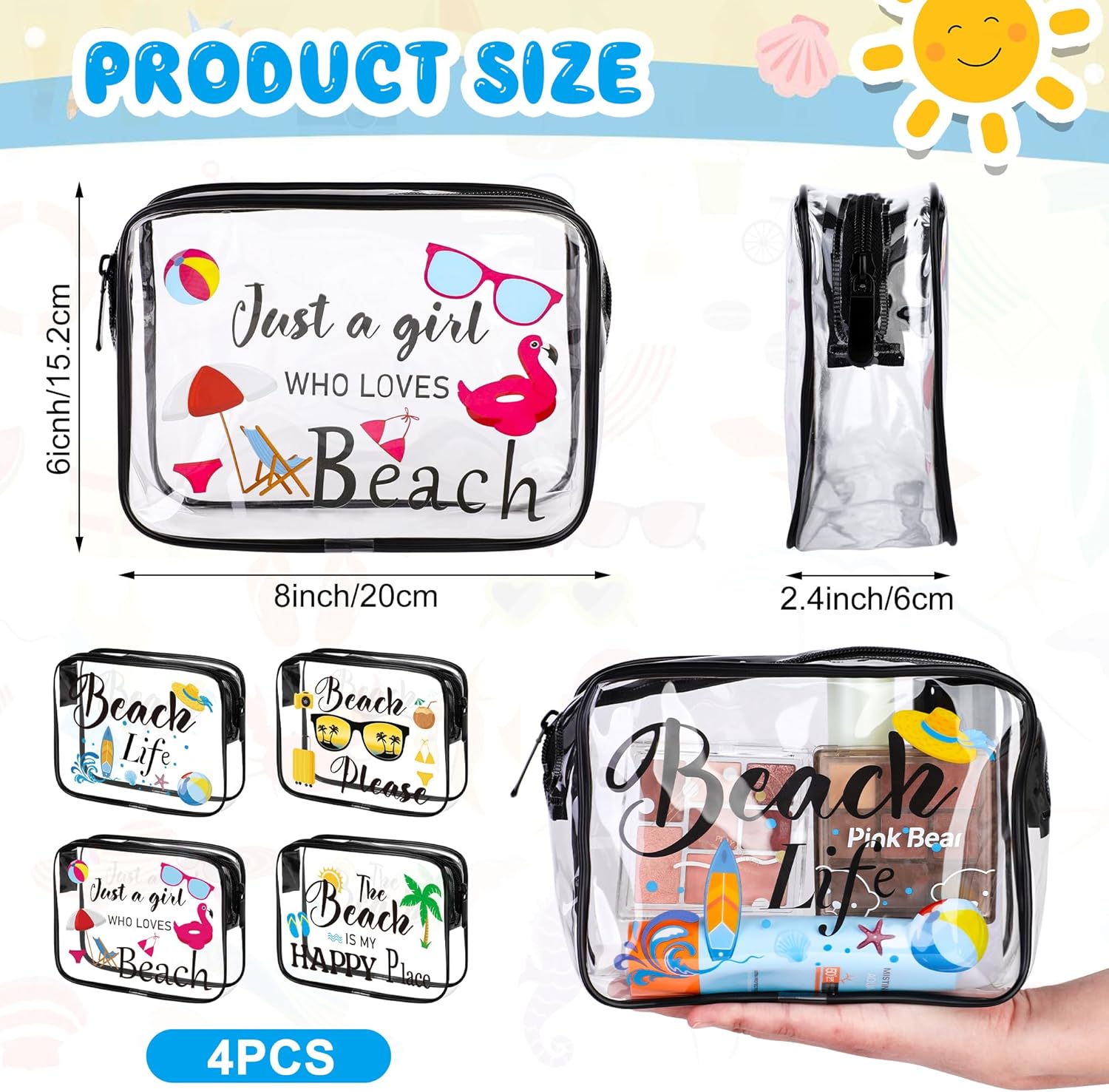 Package content: you will receive 4pcs clear makeup bags printed with summer beach patterns, they are full of summer beach atmosphere, as if you are enjoying a perfect sunbathing on the beach. Enough quantity to meet your different needs and you can share them with your family or friends.