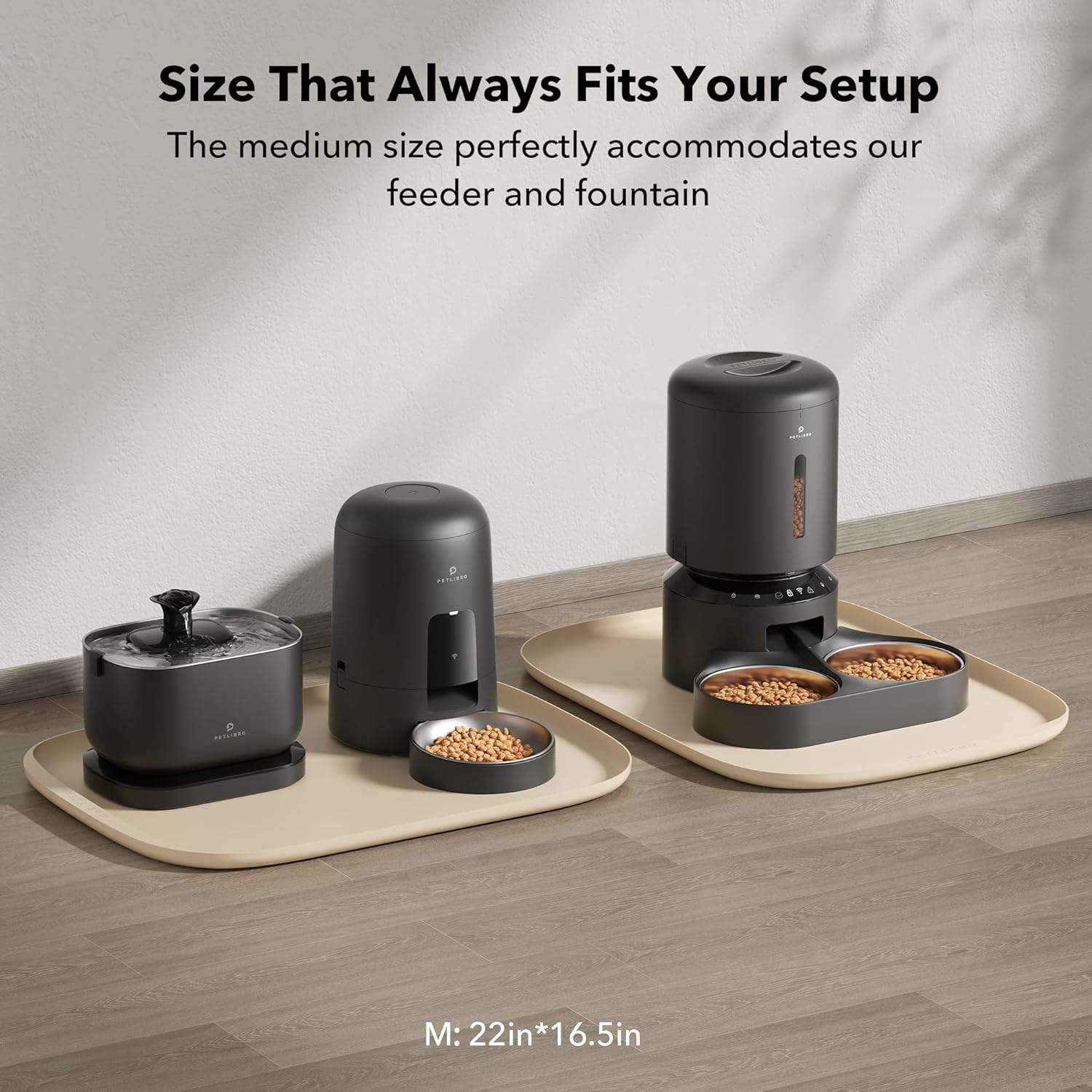 A Perfect Fit For Every Pet And Bowl: With a range of sizes and colors to choose from, the Cove food mat is a versatile addition to any pet feeding station. The small mat measures 17.7 × 12 in, while the medium option measures 22 × 16.5 in. Not only do they fit perfectly with the PETLIBRO range of smart feeders and fountains, but they’re compatible with various bowls and accessories too.