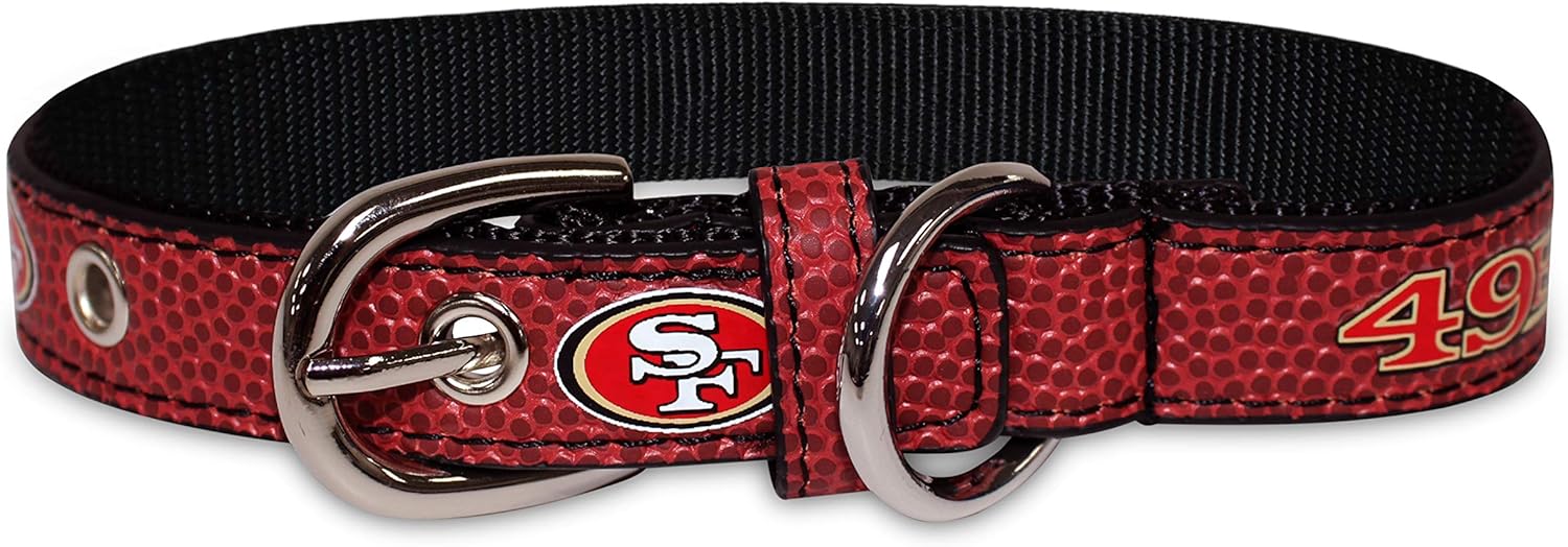 Pets First Tough Leather Pet Collar NFL SAN Francisco 49ERS Premium Dog Collar, Limited Edition, Size Small. Best & Strongest Heavy-Duty Dog Collar!, small (12-15″” long & 0.75″” wide)
