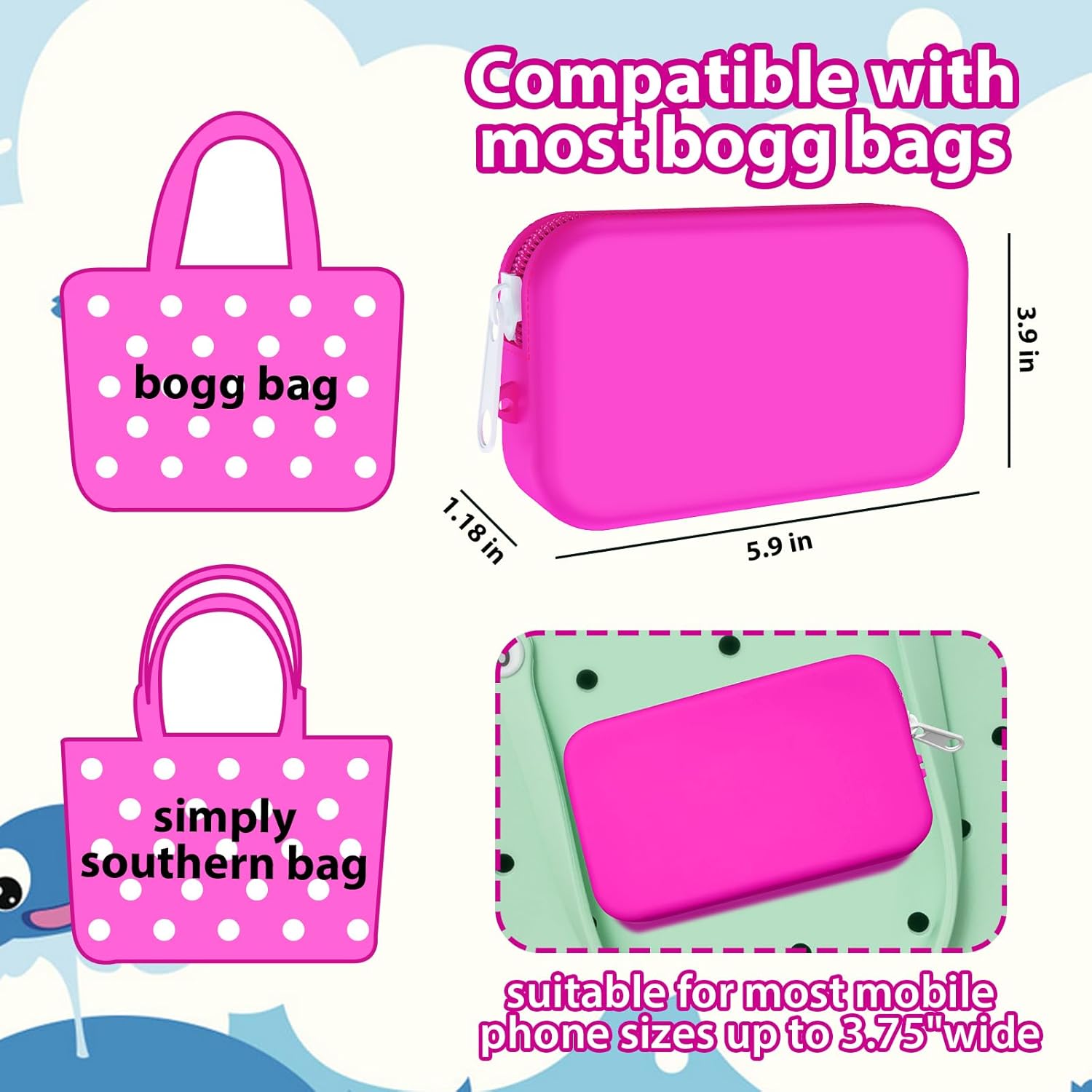 Phone Holder Pouch for Bogg Bag Accessories, Soft Silicone Insert Wallet Charm Beach Bags Device Holder, Silicone Rubber Pouch for Bogg Beach Tote Bag Pocket for Cards, Keys, Earphone, – Hot Pink