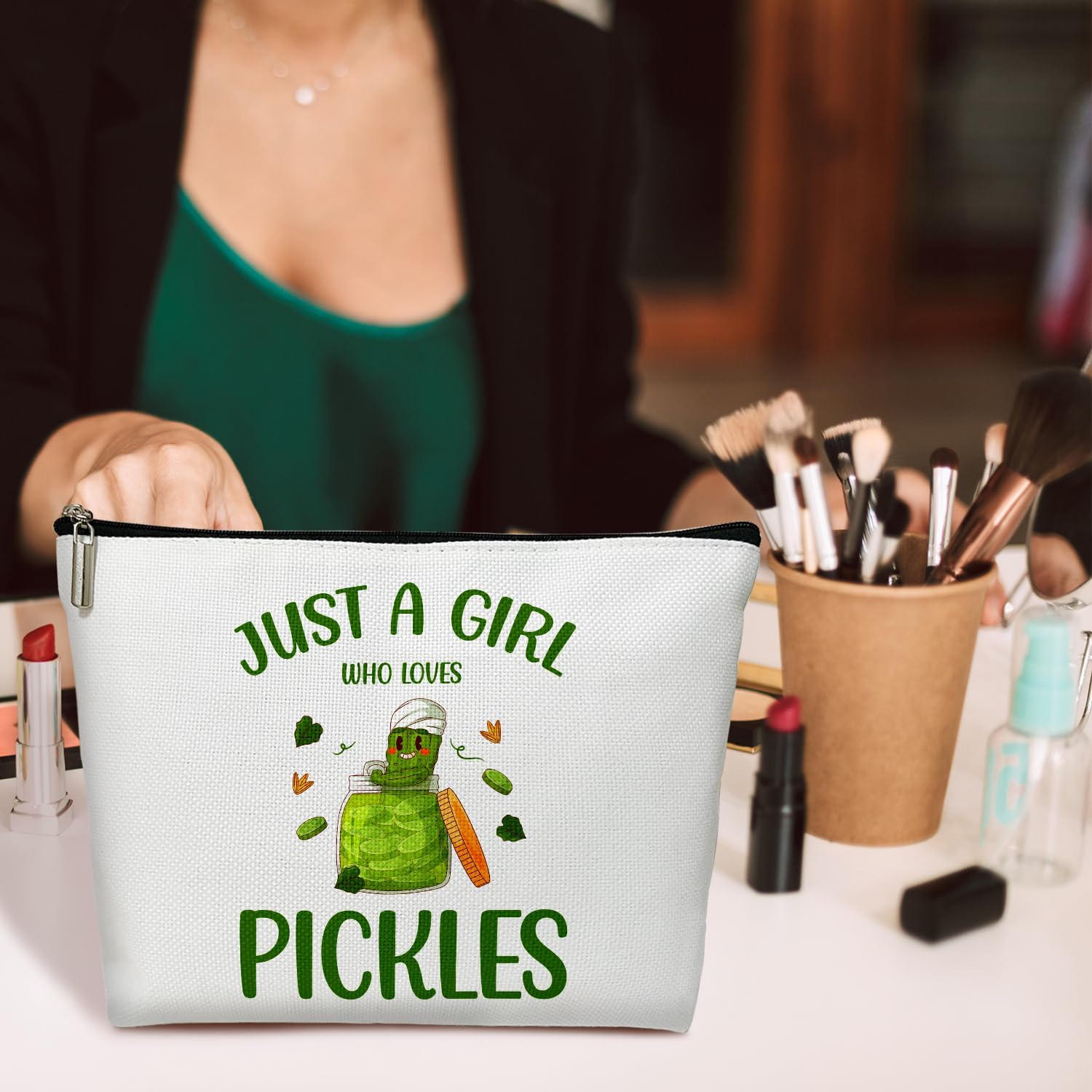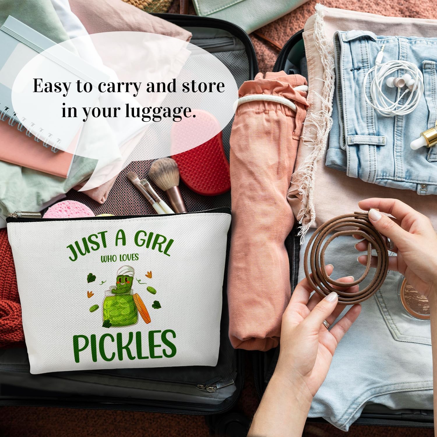 Pickle Makeup Bag Pickle Lover Gifts for Women, Pickle Gifts for Daughter Sister Friend Mom Aunt Just A Women Who Loves Pickles Pickle Stuff Cosmetic Zipper Pouch Travel Toiletry Bag -A03