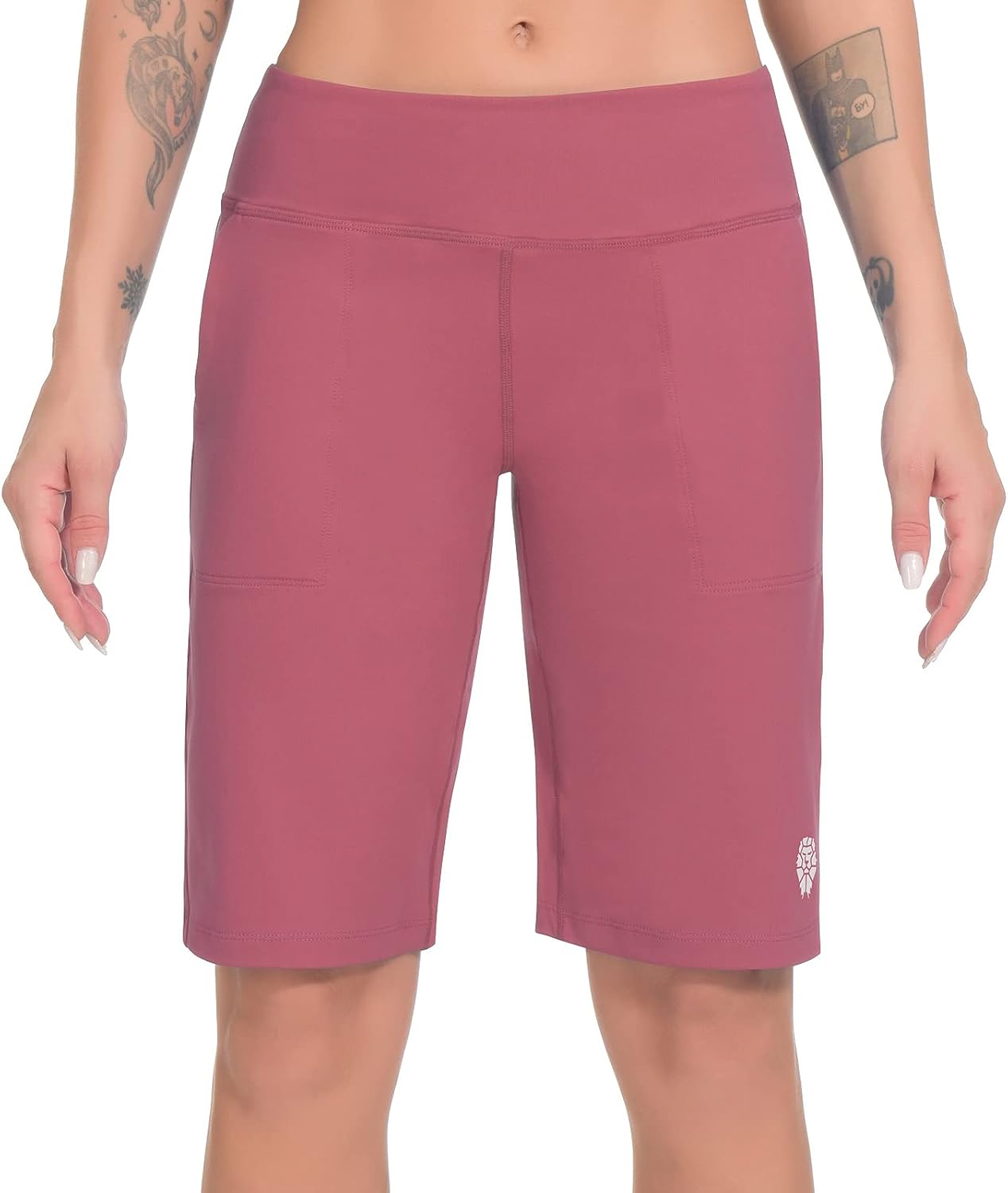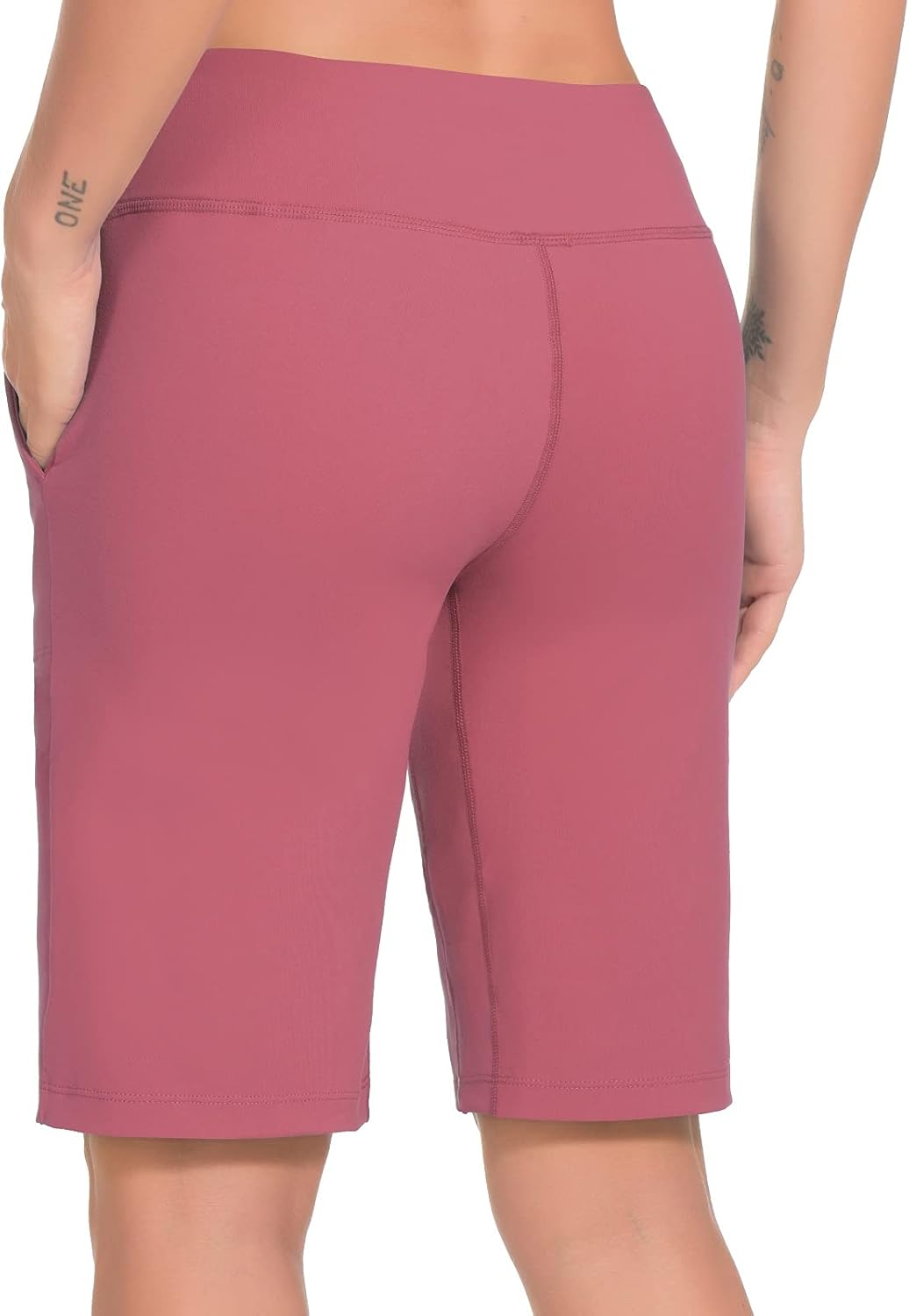 PIQIDIG Womens Shorts Athletic Mid High Wasited Running Yoga Lounge Bermuda Shorts Workout with Pockets