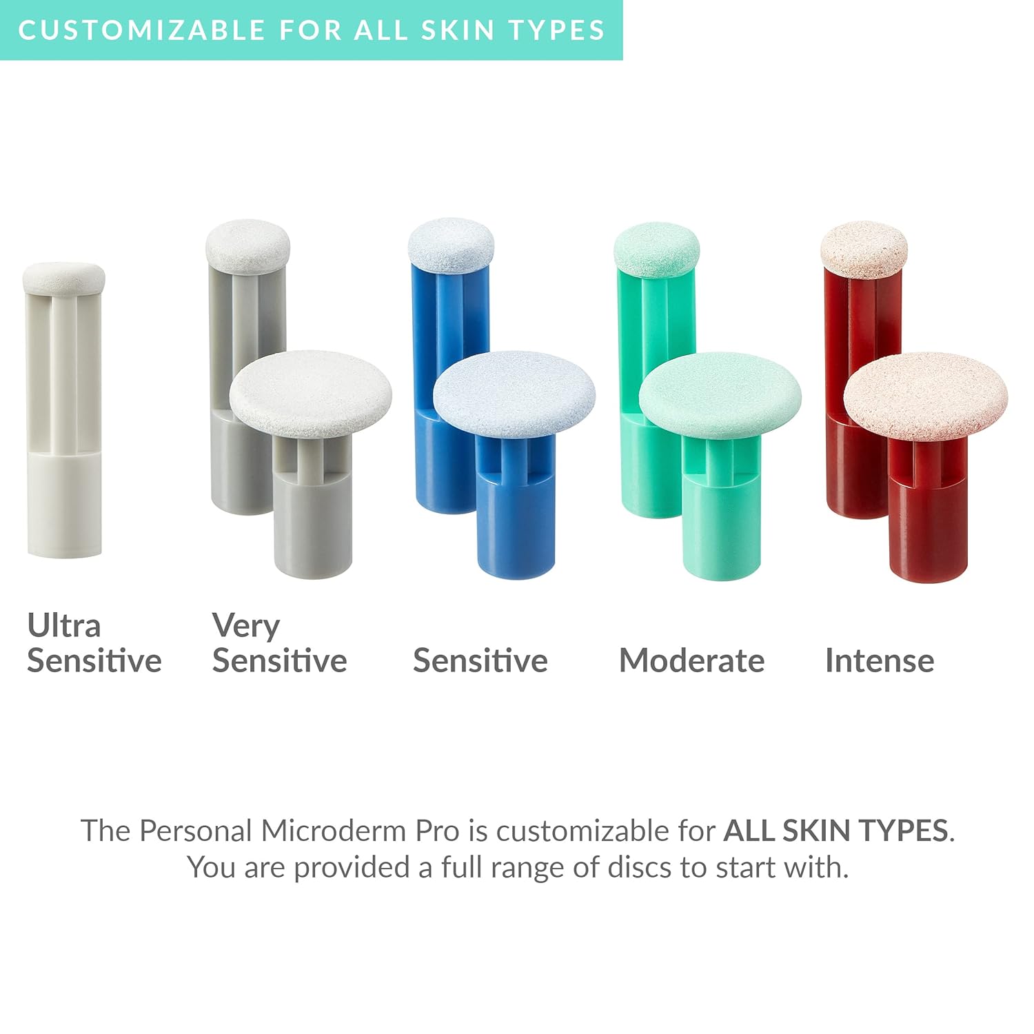 Each treatment is customized with the Personal Microderm Pro’s two speed settings and an interchangeable, full range of discs for both face and body.