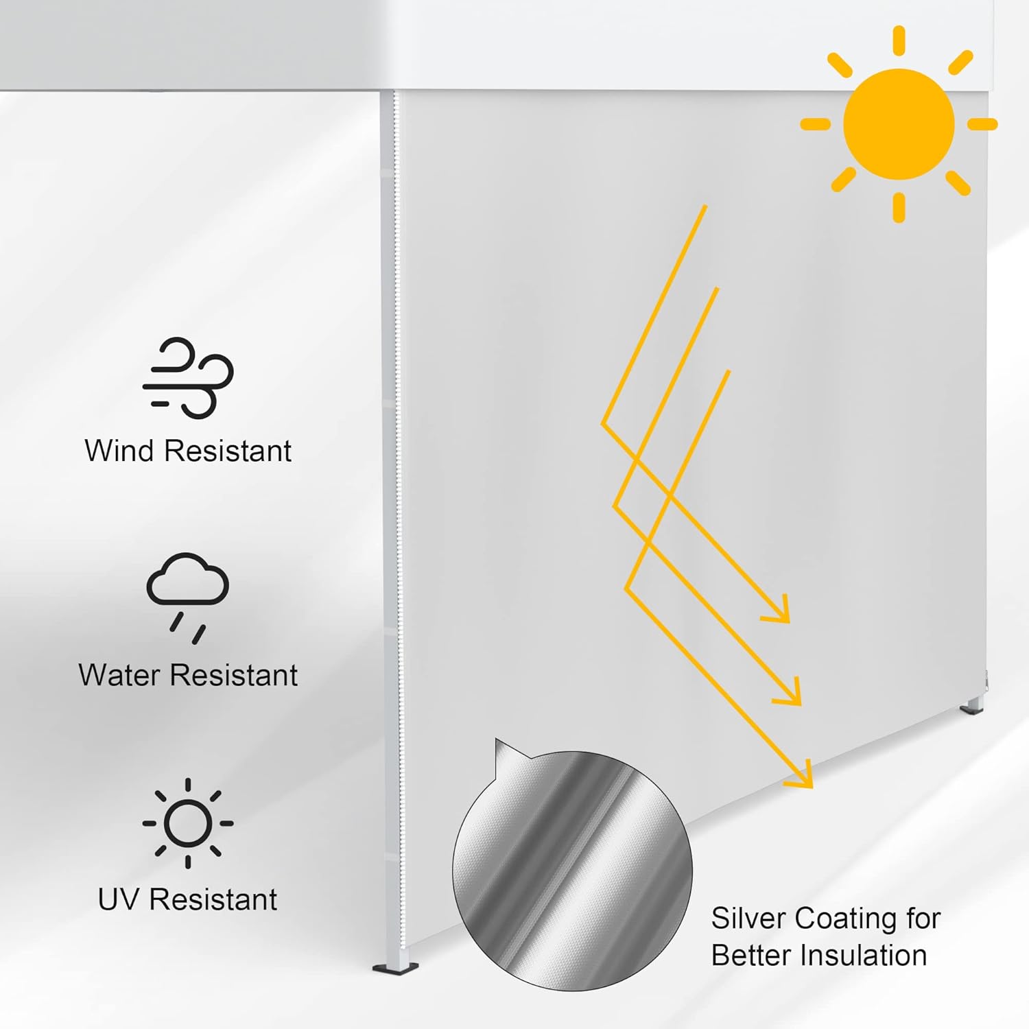 【UV Protected】UV-resistant coating sunwall provides excellent protection against the sun’s harmful rays, silver coating reflects heat, keeping you cool and comfortable even in hot weather.