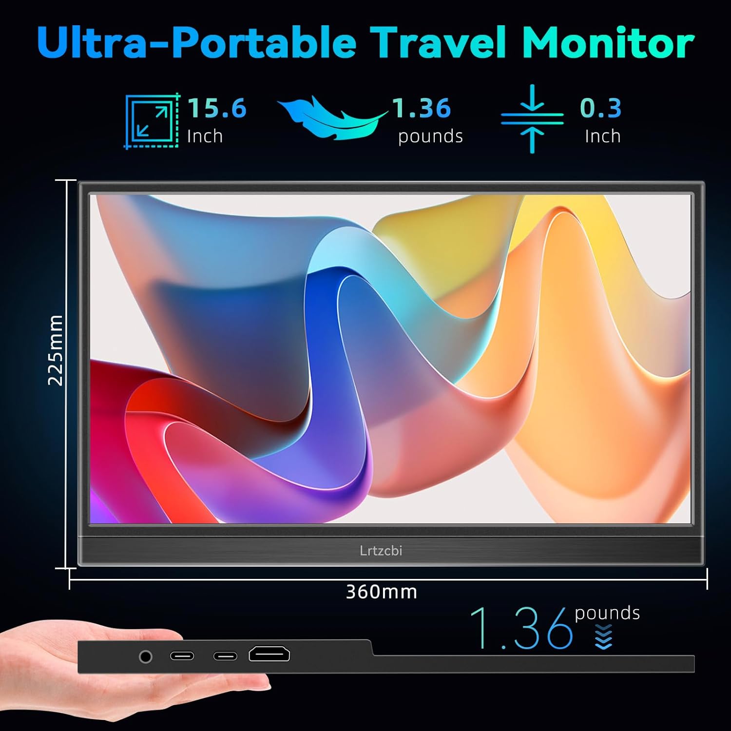 [Visual Experience] Lrtzcbi 15.6 inch HDR Touchscreen Portable Monitor using IPS screen with 1920×1080 native resolution , 16:9 (4:3) aspect ratio, 300cd/m2 brightness, 1000:1 Contrast Ratio,60Hz refresh rate The portable monitor delivers good visual experience.