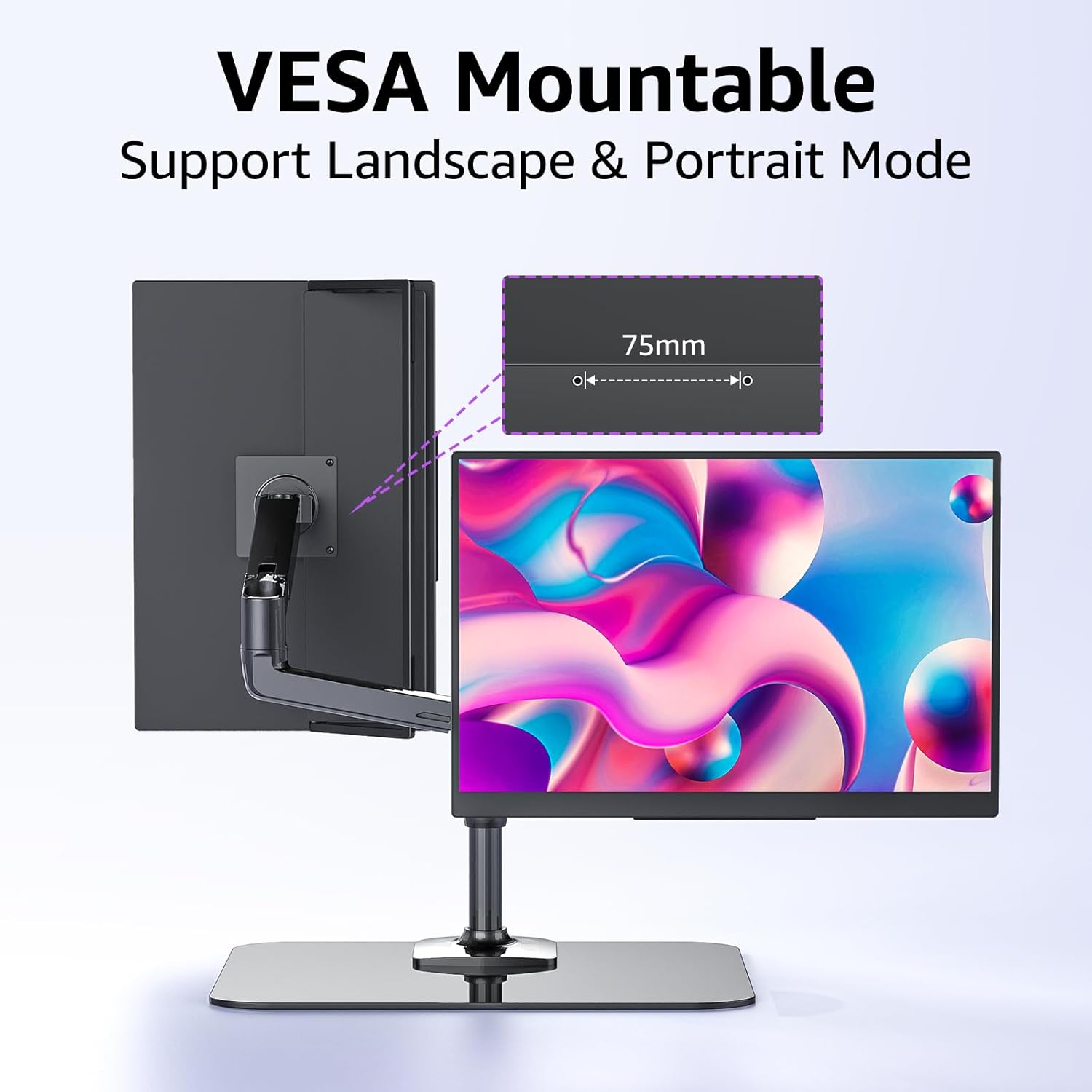 【VESA and Kickstand to Meet All of Your Needs】With VESA-compatible screw, you can easily set up this portable laptop monitor on a desktop mount stand, displaying vertically or horizontally. With the 0°~180°adjustable kickstand attached, wherever you are, just take the monitor straight out of your bag and then enjoy using it.