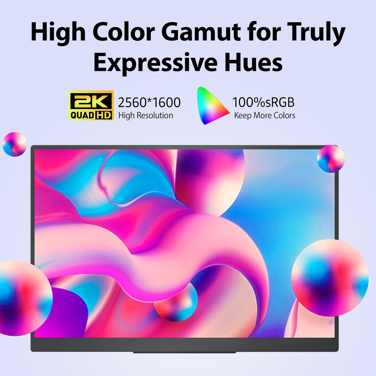 【Ultra-Slim, Portable, Plug-and-Play】Weighing only 1.8 lb. (monitor only) and 0.55-inch in thickness, the 16inch 2K portable monitor can easily be stowed in your carry-on bag, whether you’re traveling, touring or moving. No driver or software needed! Just Plug-and-Play!