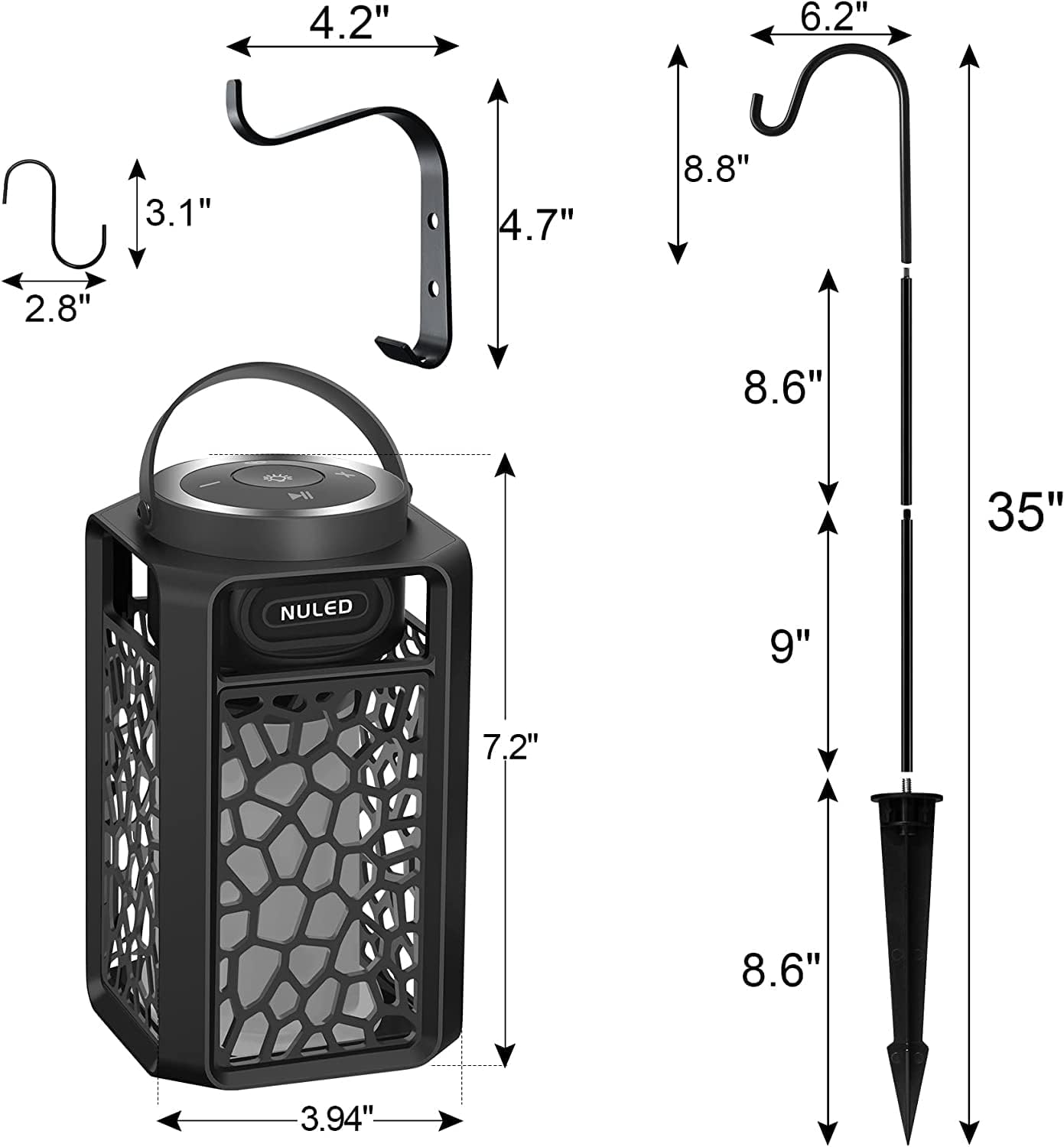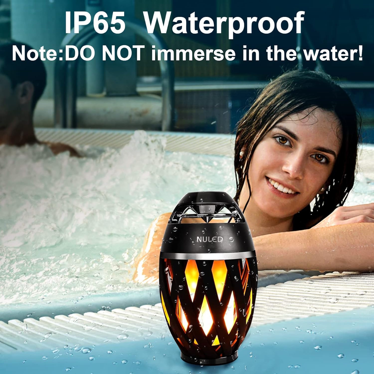 [Multifunction Lantern Speakers] NULED outdoor speaker is not only a portable wireless speaker but also a patio torch,hanging lantern,atmosphere night light,or camping accessories.NULED tiki torch speaker has 120 leds inside and two lighting modes.In flickering flame light mode,all 120 LEDs flicker warm yellow lights,forming a stunning flame,mimic extremely realistic & natural dancing flames.In canstant light mode,it adds 360° illumination to your space and creates a romantic atmosphere.