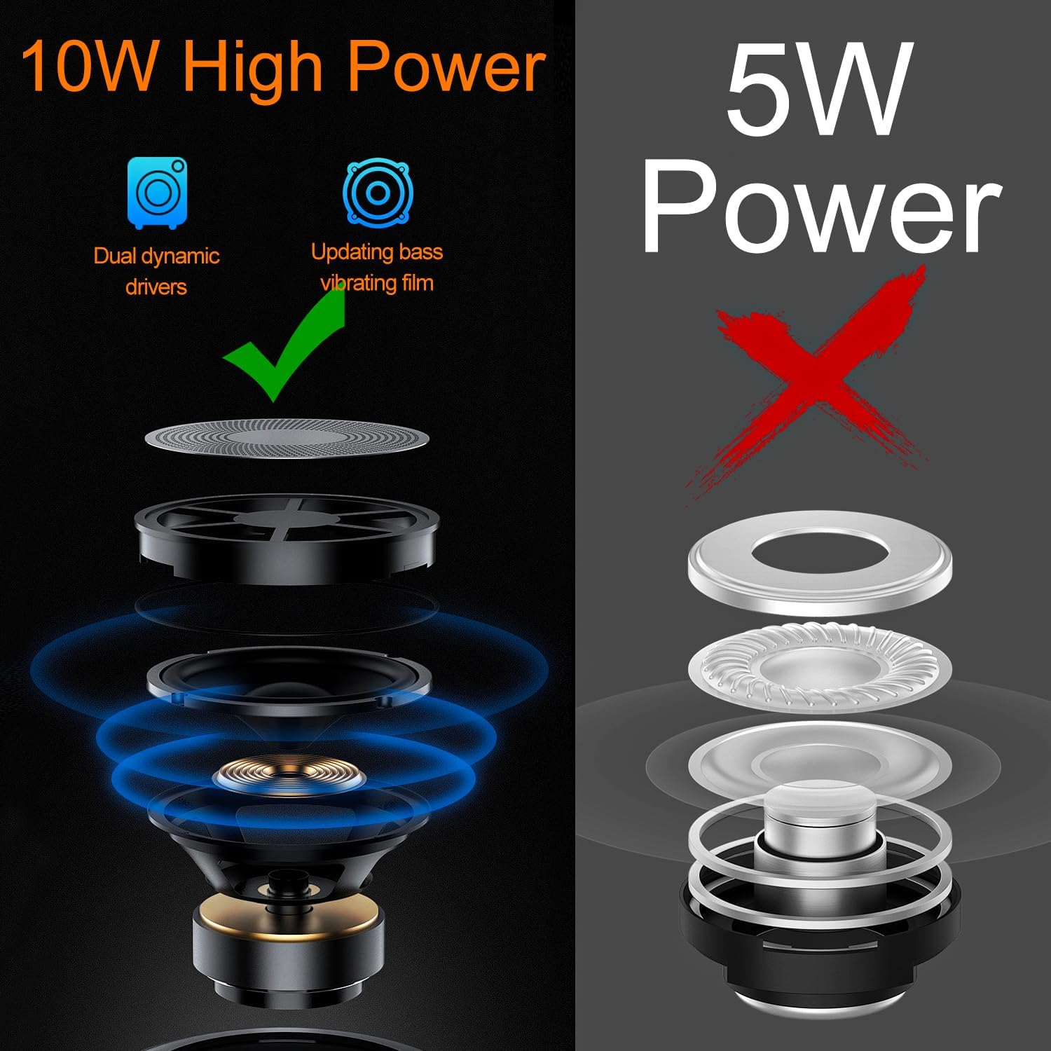 Built-in 10W driver Brings you outstanding clear sound performance with nice bass.Our TWS NU-20P NULED speakers allow you to pair up to 2 speakers to play stereo sound, one speaker for left channel, the other for right channel. If you want to use multilink speaker system to play surround sound, please order the other item NU-10S(or NU-10M, ASIN:B09PL29QW4) from our Amazon store.8 nonstop hours of your favorite music,great for a party night.