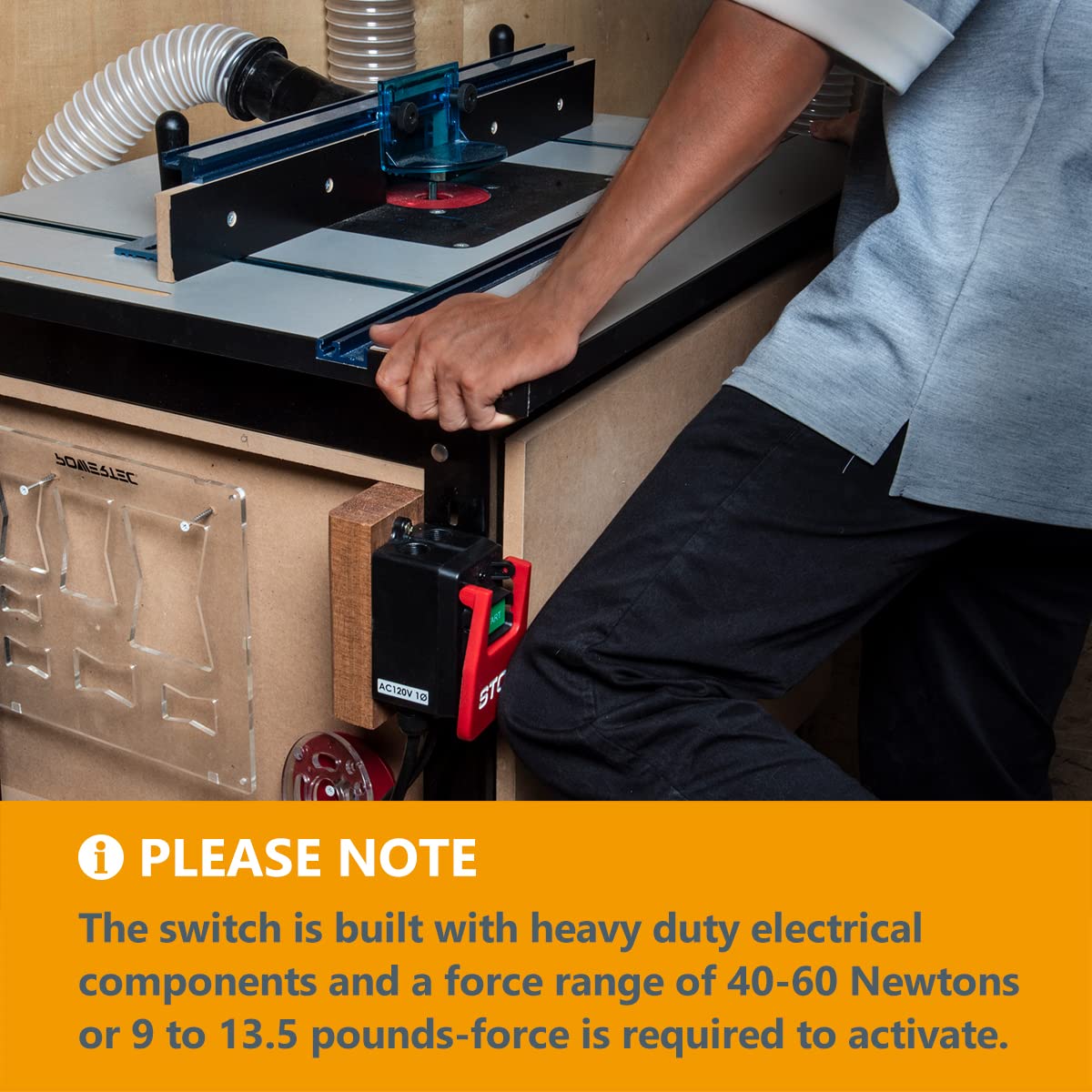 SWITCH EASY SET-UP: The emergency power box switch comes with two heavy duty cords. The female cord accepts the power source plug from your router and/or other woodworking machines. The 3 prong male cord seamlessly plugs into your wall outlet without any complicated wiring