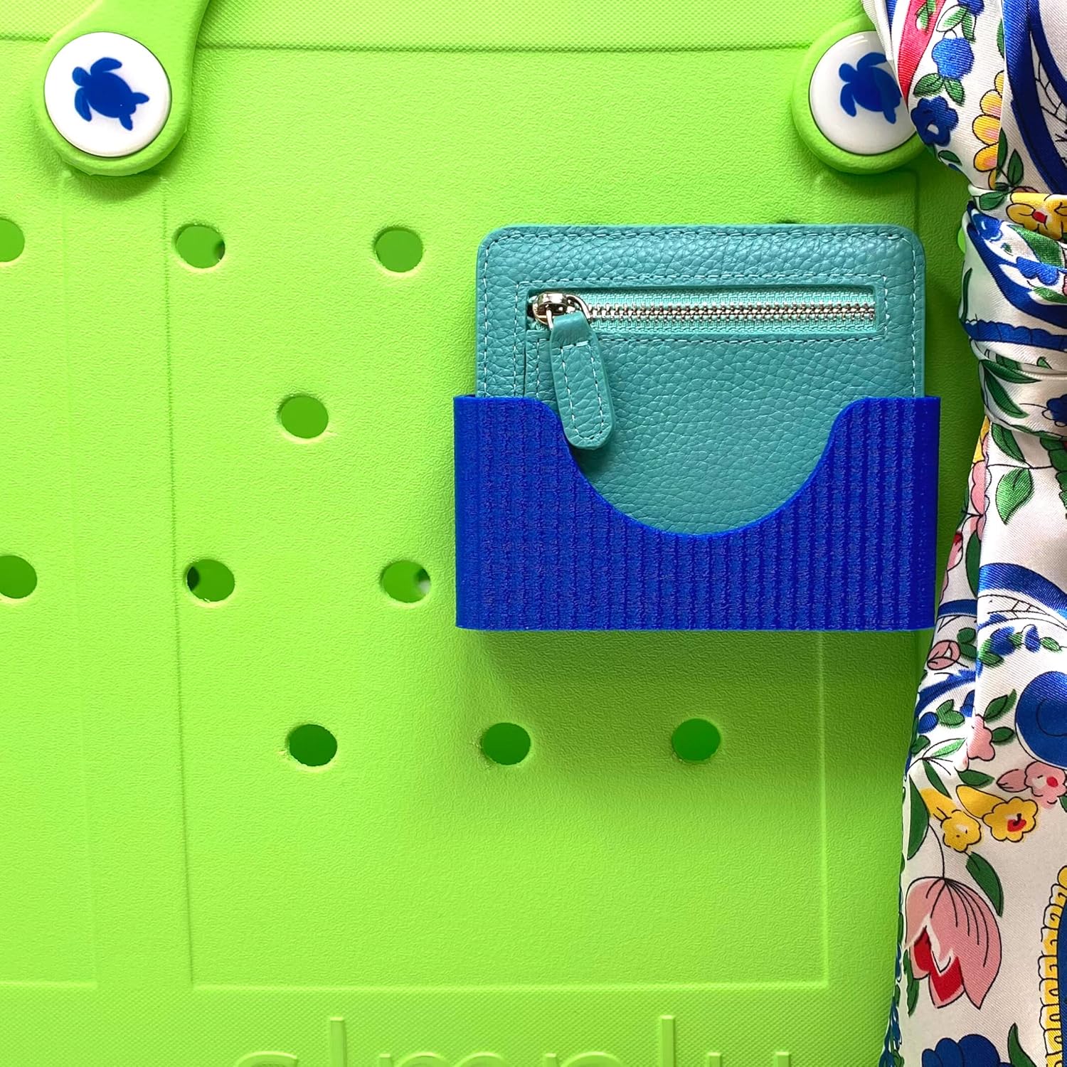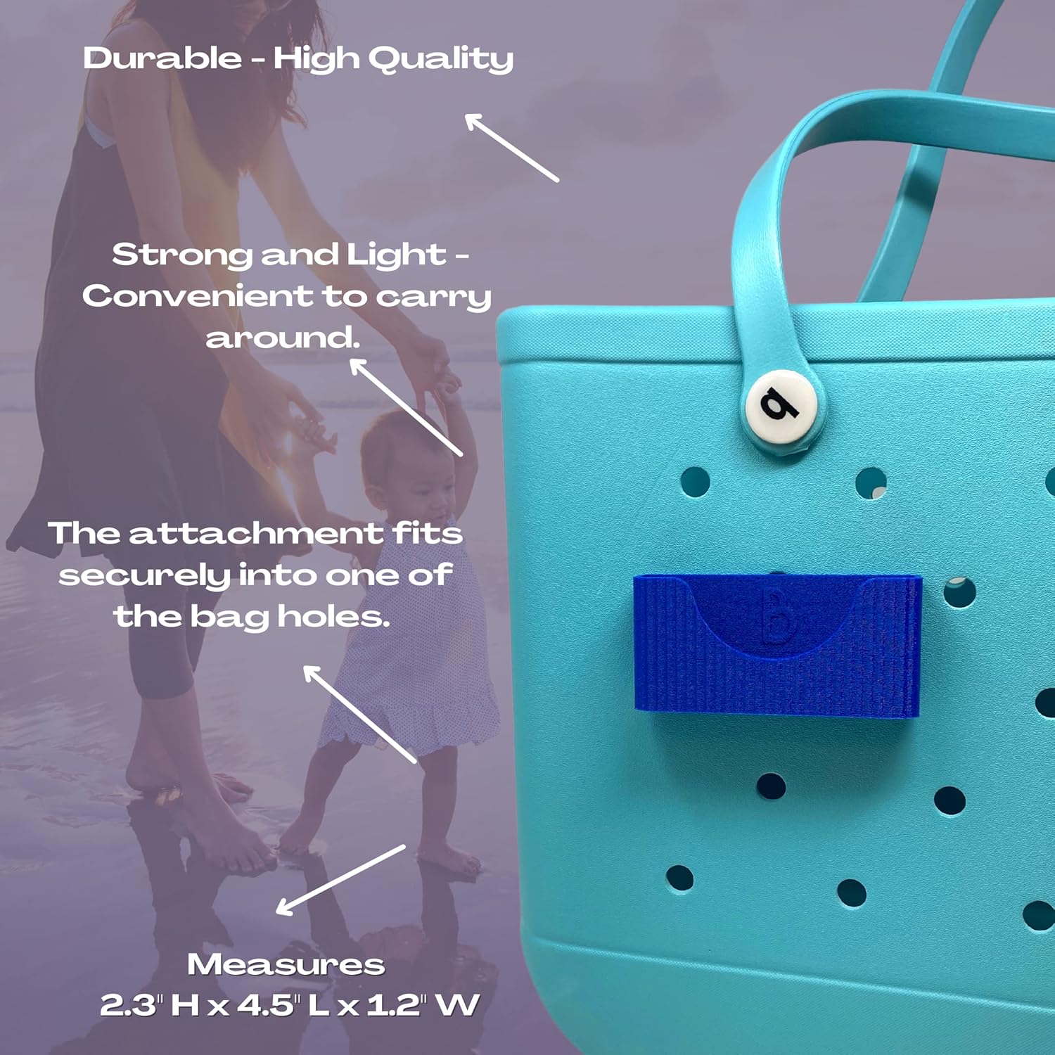 Tired of digging to the bottom of your bag to find your wallet? Look no further! This convenient Wallet Holder Accessory works perfectly with your Tote Bag. This accessory is crafted with high quality plastic, and the attachment fits securely into one of the bag holes just like a charm and safely holds your wallet in place. But don’t limit yourself; you can also fit gum, chocolate bars, cookies, makeup, or other personal items. You can attach the Wallet Holder to the inside or outside of the bag so you can keep your device handy at all times. It’s great for the beach, pool, at sporting events, or anywhere else you take your bag! This accessory is compatible with all standard Bogg Bag, Simply Southern and other similar Tote Bags. (Tote Bags are not included.) We design, test, and manufacture all of our products in-house in the USA before sending them straight to your doorstep.