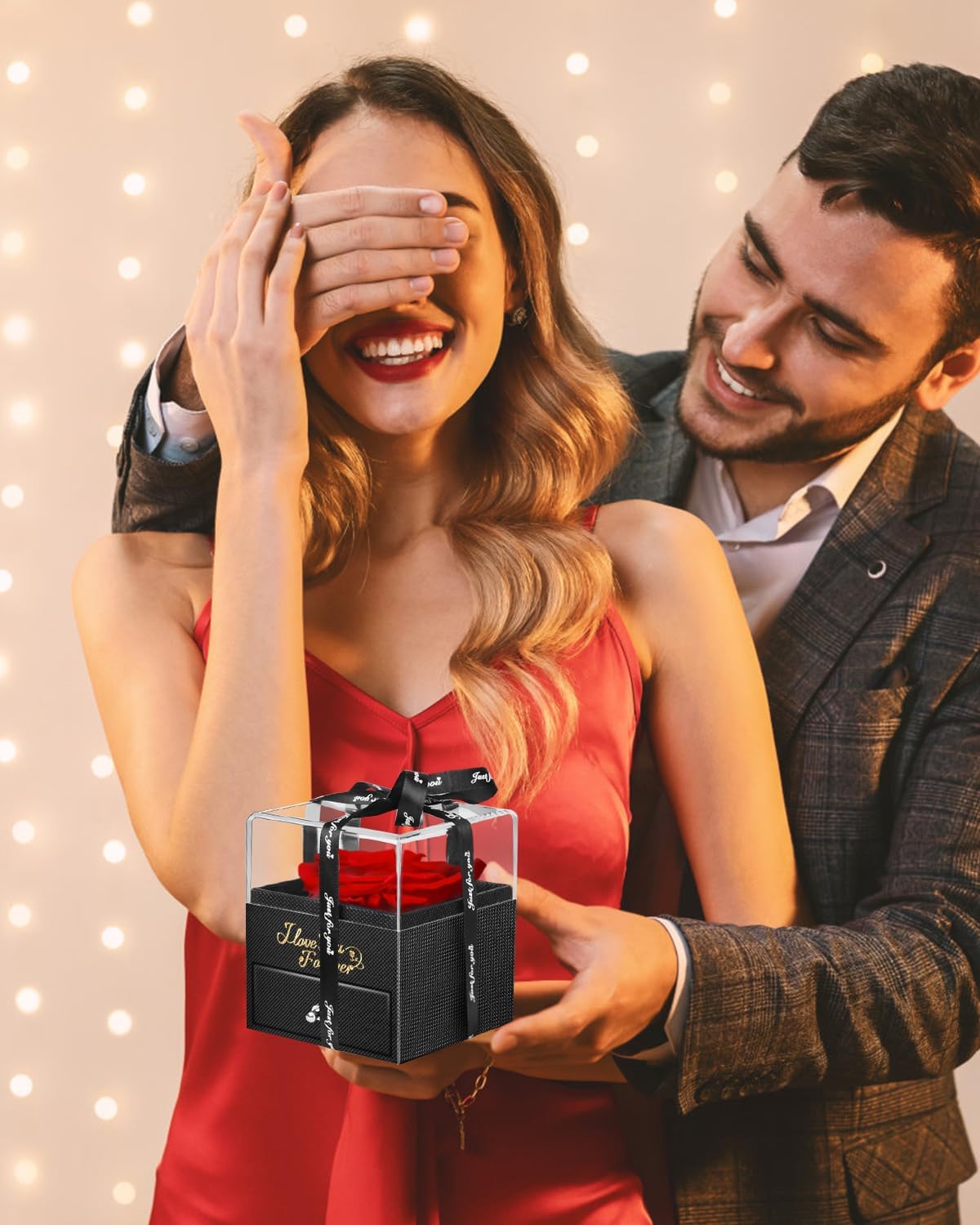 This “I Love You” gift for her is perfect for anniversaries, Christmas, and birthdays. This eternal rose is a symbol of enduring love and is suitable for any special occasion as a gift for your girlfriend.
