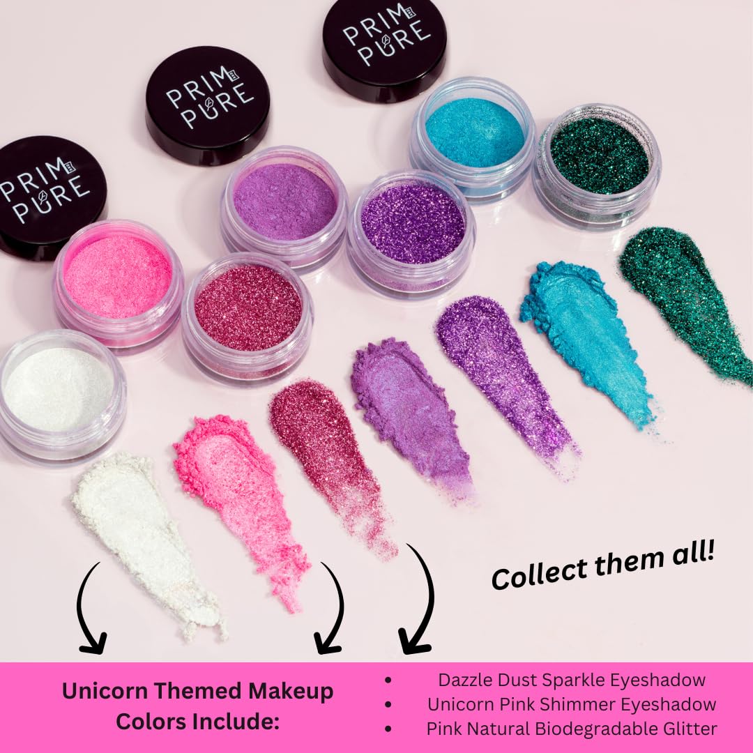 Prim and Pure Kids Makeup Gift Set – Stencil, Makeup Eyeshadow Bioglitter Lip Gloss and Cosmetic Bag Mirror Makeup Brush Accessories (Unicorn Pink)