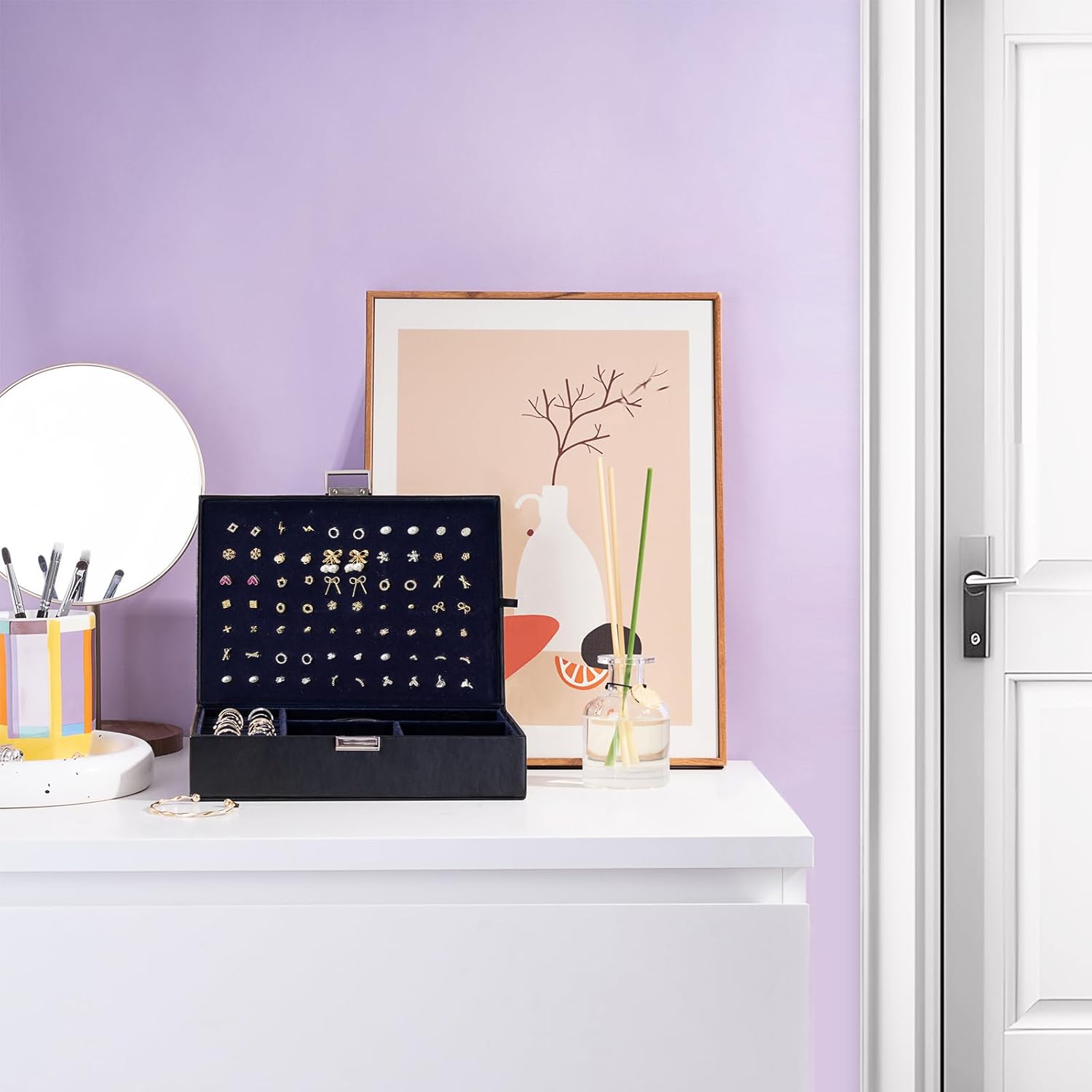 ✅ Compact but Large Capacity – There are so many compartments perfectly placed into this box, everything can be organized. No more hunting for a matching earring, quick and easy access to jewelry in the morning