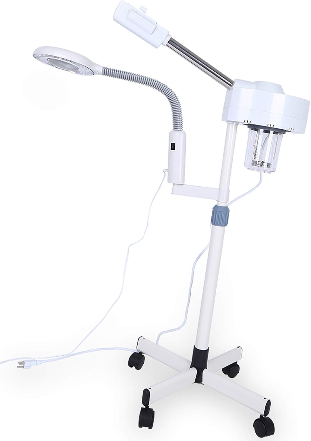 Professional Facial Steamer with 3X Magnifying Lamp, Spa Salon Beauty Skin Care Equipment, LED Light, 4 Leg Wheeled Stand – US 110V