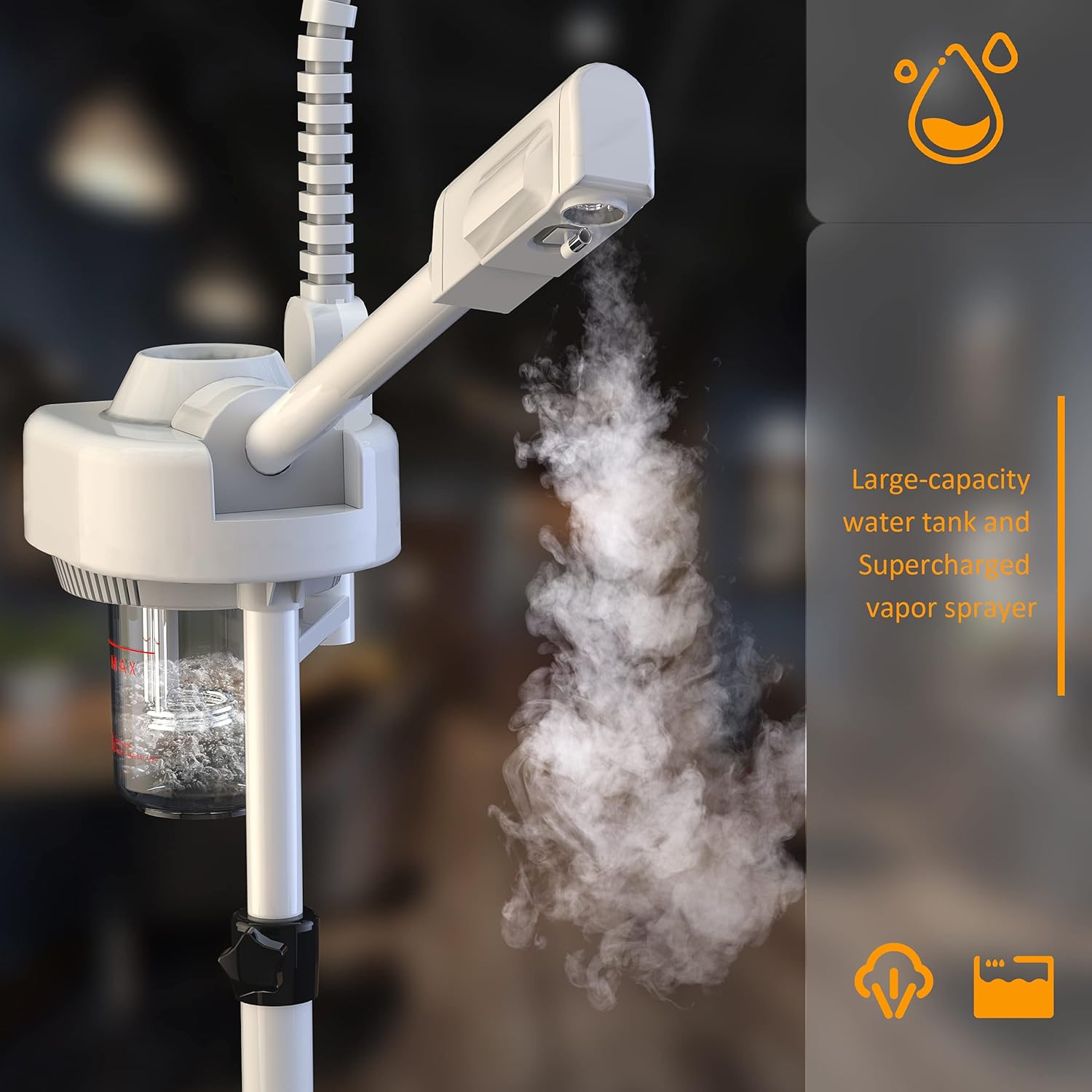 DEER BEAUTY Face steamer comes with a 750-watt heating element that allows for quick steam generation. It also includes Ionic Ozone that enriches steam with ozone for reduce fine lines and wrinkles for smooth skin.The steam machine promotes sweating that opens up the pores and allows the skin to breathe. Ozone enriched steam penetrates deeply to remove oil, dirt and grime from the pores. It also helps to promote blood circulation around the skin surface for improved delivery of nutrients.The steamer has a height-adjustable stand on caster wheels allowing for easy movement. High-quality construction makes it ideal for use in professional beauty salons and spas.