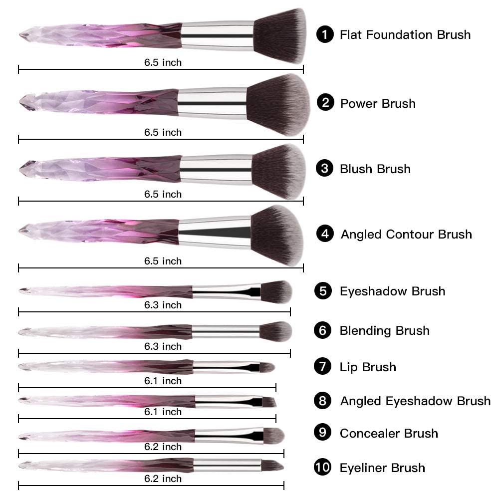 Professional Make Up Brush 10pcs Soft Bristles Hair Makeup Brushes Eyeliner Eyebrow Lip Contour Blending Brush Set (Purple)