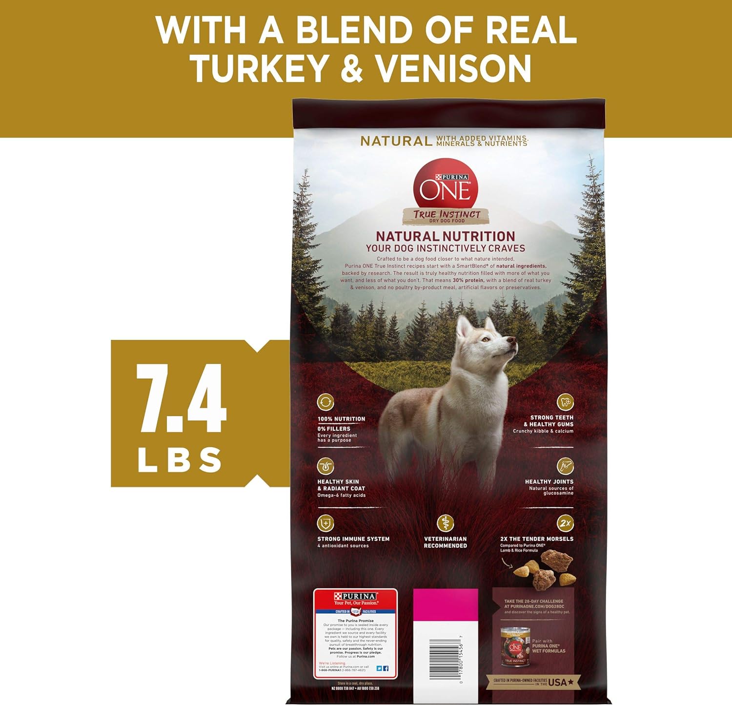 Purina ONE True Instinct With A Blend Of Real Turkey and Venison Dry Dog Food – 7.4 lb. Bag