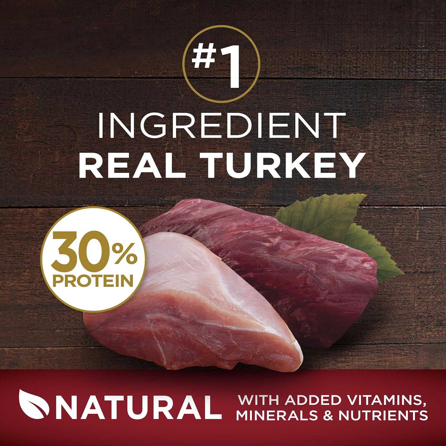 Fuel your dog with nutrition he craves with Purina ONE True Instinct With a Blend of Real Turkey and Venison adult natural dry dog food with added vitamins, minerals and nutrients. With 100 percent nutrition and 0 percent fillers and with no poultry by-product meal or artificial flavors or preservatives, every ingredient in this dog food has a purpose. We start our high protein dog food recipe with real turkey as the number 1 ingredient and include real venison, delivering 30 percent protein to help support your dog’s strong muscles, including his healthy heart. Along with a highly digestible formula that lets more nutrition go to work inside your pal, this nutrient-dense recipe features natural sources of glucosamine to support joint health for dogs and a crunchy kibble texture and added calcium helps support his strong teeth and healthy gums. To make mealtime even more enjoyable, our complete and balanced adult dog food features two times the meaty morsels compared to our Purina ONE Lamb and Rice formula.,Purina ONE is produced in U.S. facilities where we take steps to make it good for your dog and good for the environment, like reducing water and using renewable electricity. When your dog has finished enjoying this food, please check your label for recycling guidance.