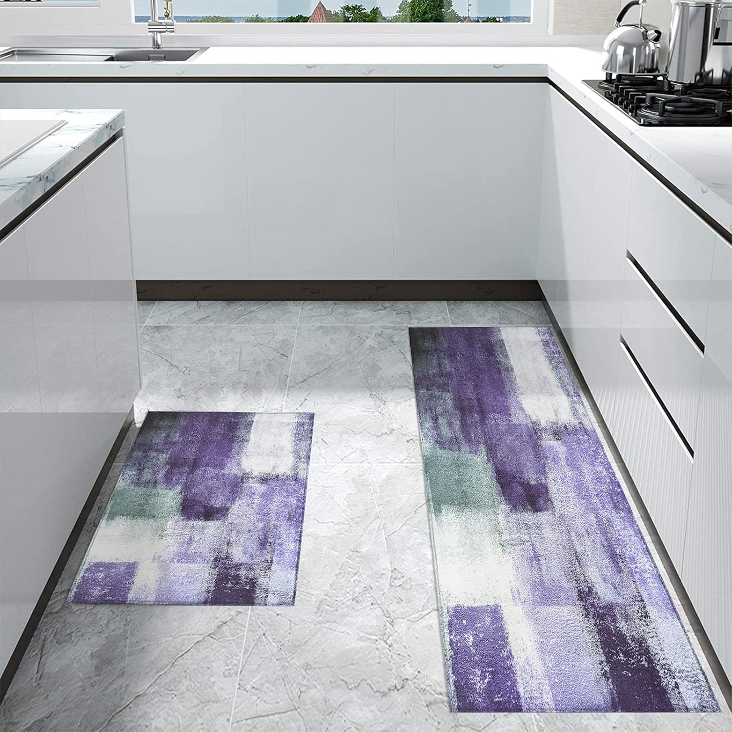 【Versatile Purple Kitchen Accessories】Kitchen floor mats are perfect for kitchen, kitchen & dining room tables, kitchen & dining room chairs, laundry room mat, apartment essentials for first apartment, anti-fatigue mat, living room decor, bedroom decor, bathroom rugs, hallway, house decor, office, patio rug, door mat, welcome mat, sink mat or any other high-traffic area.