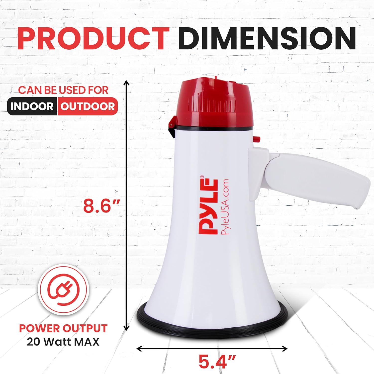 Pyle Megaphone Speaker PA Bullhorn – 20 Watts & Adjustable Vol Control w/ Built-in Siren & 800 Yard Range for Football, Baseball, Hockey, Cheerleading Fans & Coaches or for Safety Drills – PMP20,White