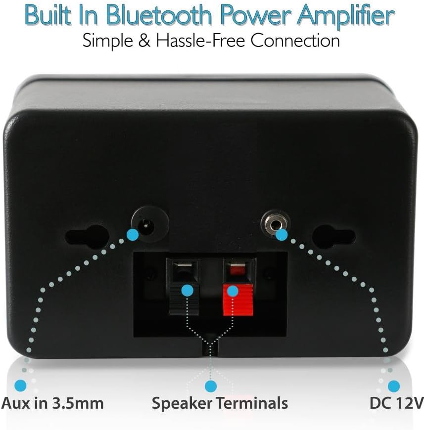 Waterproof Marine Bluetooth Speakers 3.5” Bluetooth Home Speakers, 3-Way Indoor/Outdoor Speaker System, 200 Watt Features: Active + Passive Dual Speaker System Bluetooth Wireless Music Streaming Universal Indoor/Outdoor Mountable Aux (3.5mm) Input Jack Connect & Stream Audio from External Devices 3-Way Full Range Stereo Sound Reproduction Bass Reflex Vent for Added Bass Response Built-in Capacitor Crossover Network Lightweight & Compact Size Removable Rustproof Mesh Grills Quick Connect/Disconnect Speaker Terminals Used for Home, Garage, Yard, Deck, Porch, Patio What’s in the Box: (1) Active Speaker (1) Passive Speaker Speaker Wire, 11.5’ ft. Wall Power Adapter Removable Mounting Brackets Bluetooth Connectivity: Built-in Bluetooth Wireless Streaming Receiver Simple & Hassle-Free Connection Works with All of Today’s Latest Devices (Smartphone, Tablet, Laptop, Computer, etc.) Bluetooth Version: 4.0 Bluetooth Network Name: ‘Pyle’ Bluetooth Network Password: ‘0000’ (4 Zeroes) Wireless Range: 30’+ ft. Technical Specs: Power: 200 Watt Peak (100 Watt RMS) Subwoofers: 3.5” Aluminum Injection Cones Midranges: 1.75” Wide Dispersion Cones Tweeters: 1.0” Superior Domes Construction Material: Engineered ABS Frequency Response: 70-21kHz Magnet Structure: 24 Oz. Impedance: 4 Ohm Power Supply: 120V (DC 12V Power Adapter) Dimensions (L x W x H): 5.25’’ x 3.75’’ x 3.75’’ -Each Single Speaker Weight: 1.76 lbs. -Each The Pyle 3.5” Bluetooth Home Speakers, 3-Way Indoor/Outdoor Speaker System, 200 Watt – Active + Passive Dual Speaker System – Bluetooth Wireless Music Streaming – Universal Indoor/Outdoor Mountable – Aux (3.5mm) Input Jack – Connect & Stream Audio from External Devices – 3-Way Full Range Stereo Sound Reproduction – Bass Reflex Vent for Added Bass Response – Built-in Capacitor Crossover Network – Lightweight & Compact Size – Removable Rustproof Mesh Grills – Quick Connect/Disconnect Speaker Terminals – Used for Home, Garage, Yard, Deck, Porch, Patio – What’s in the Box: – (1) Active Speaker – (1) Passive Speaker – Speaker Wire, 11.5’ ft.