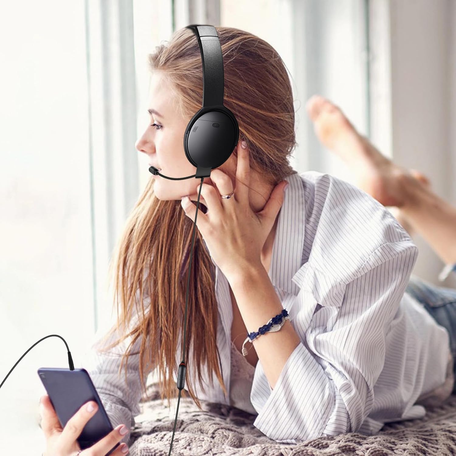 AUDIO CONTROL AND MUTE: There is a “Mute” button on the cable, you can move the “Mute” button up or down to turn the mute function on or off at any time. The convenient in-line controls allow you to quickly and easily adjust the headset volume and mute, and you can also adjust the boom microphone to the optimal position.