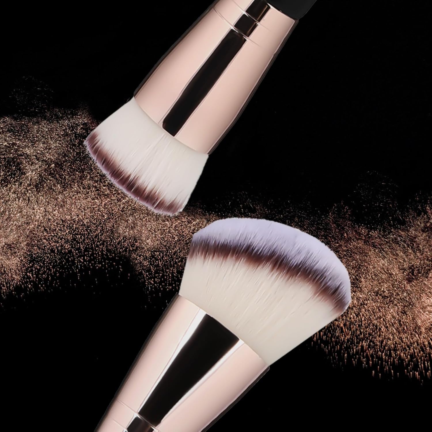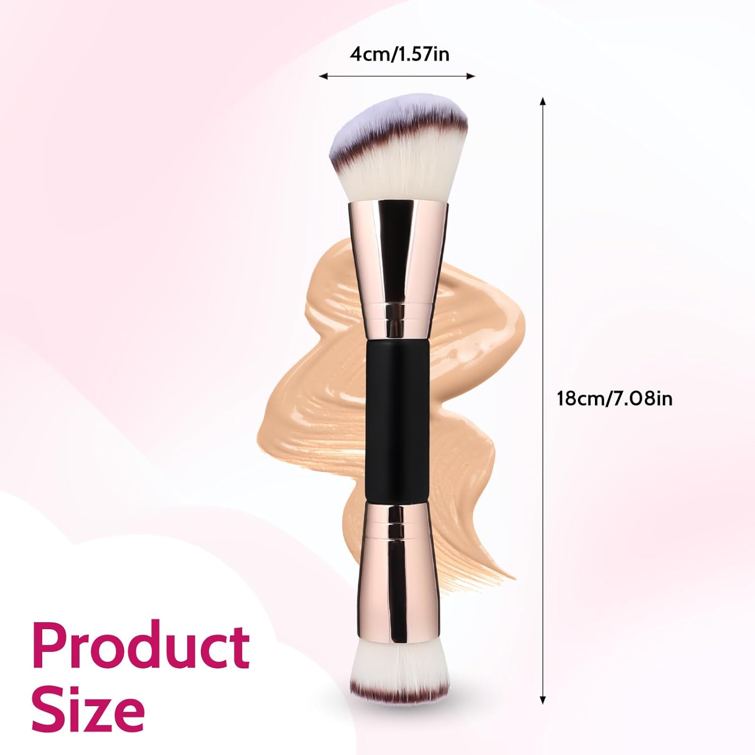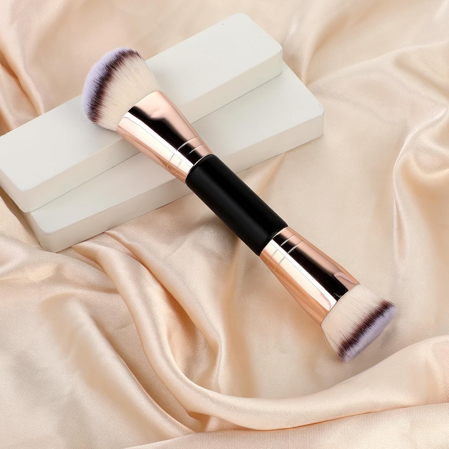 Qianyu Makeup Brushes Double Ended 2-in-1 Foundation Contour Brush (Flat/Angled) Premium Kabuki Highlighter Bronzing Concealer Brush for Liquid Cream Powder Blending Face Cosmetics Tools