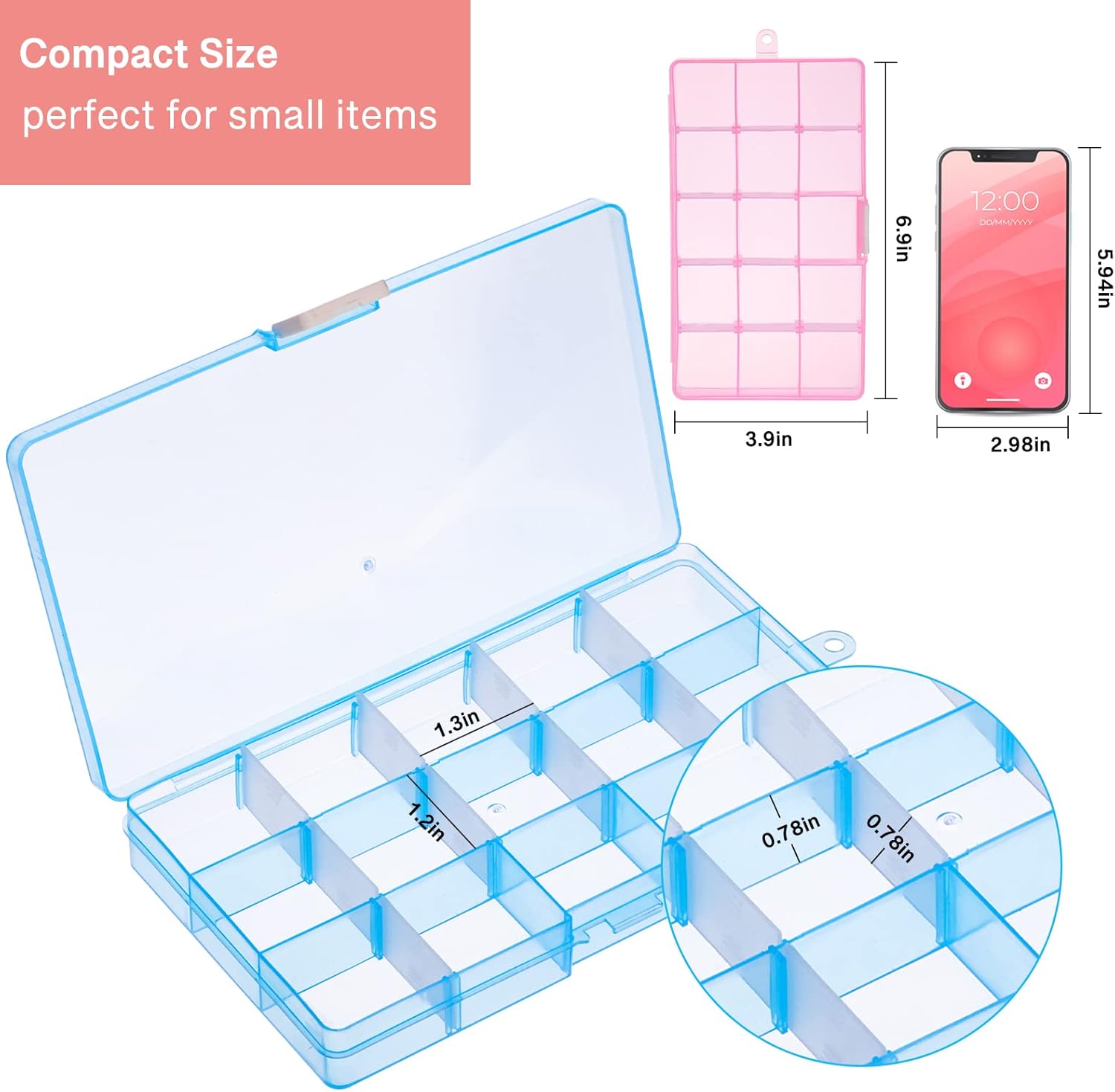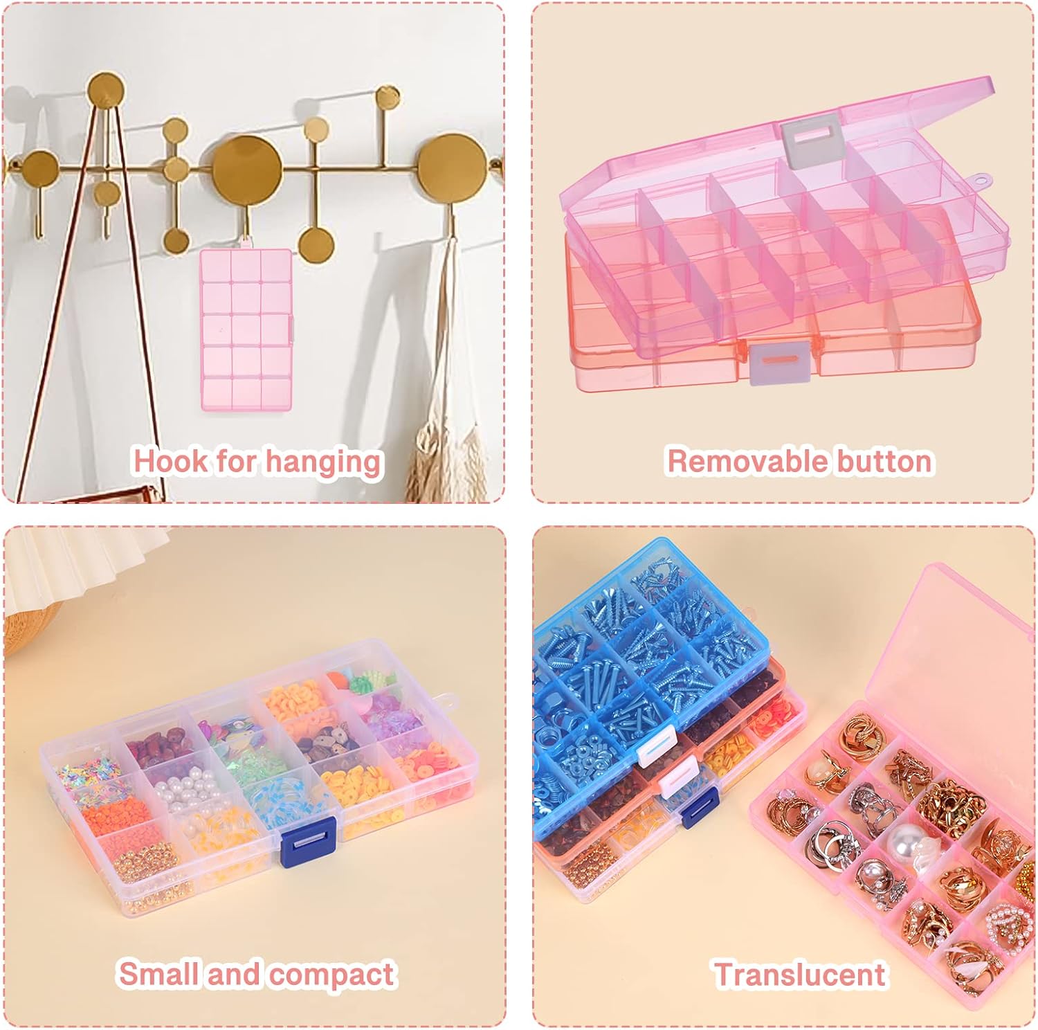 QUEFE 4 Pack 15 Grids Bead Organizers and Storage, Small Plastic Jewelry Organizer Box with Removable Dividers for Beads Earring Storage Containers(6.9 x 3.9 x 0.9 Inches)