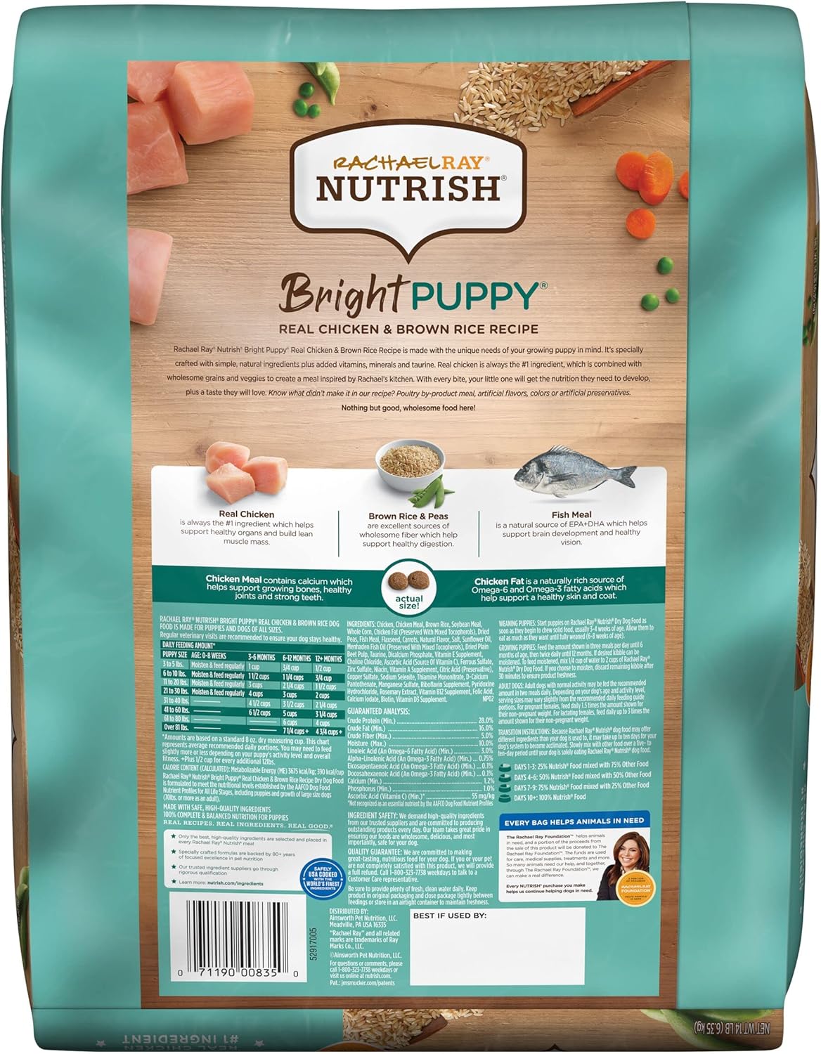 Rachael Ray Nutrish Bright Puppy Premium Natural Dry Dog Food with Added Vitamins, Minerals & Taurine, Real Chicken & Brown Rice Recipe, 14 Pound Bag (Packaging May Vary)