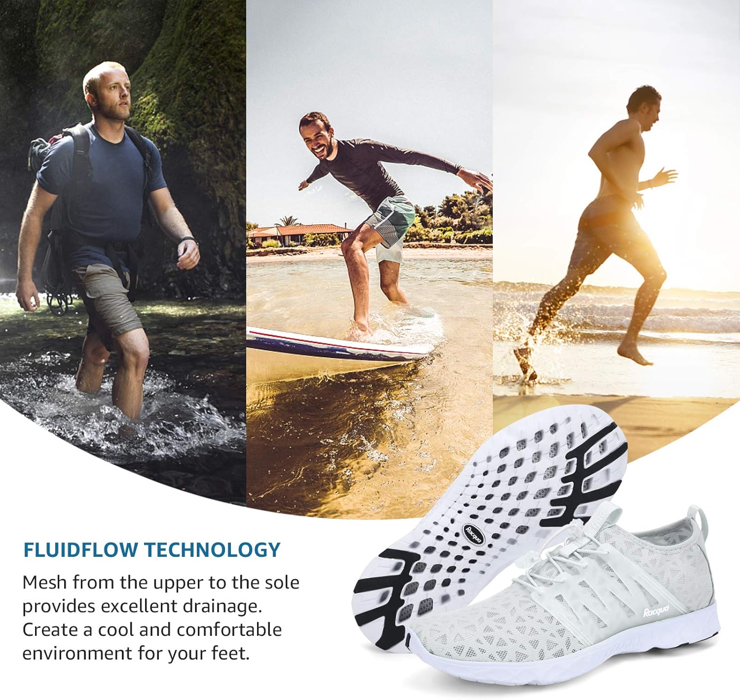 Racqua originated from the self-liberation brought by surfingCombining sports, technology, humanities and aesthetic designTo provide comfortable and high performance barefoot water shoes for everyoneReinventing the way people think about water sportsBRAVE, WILD&FREE