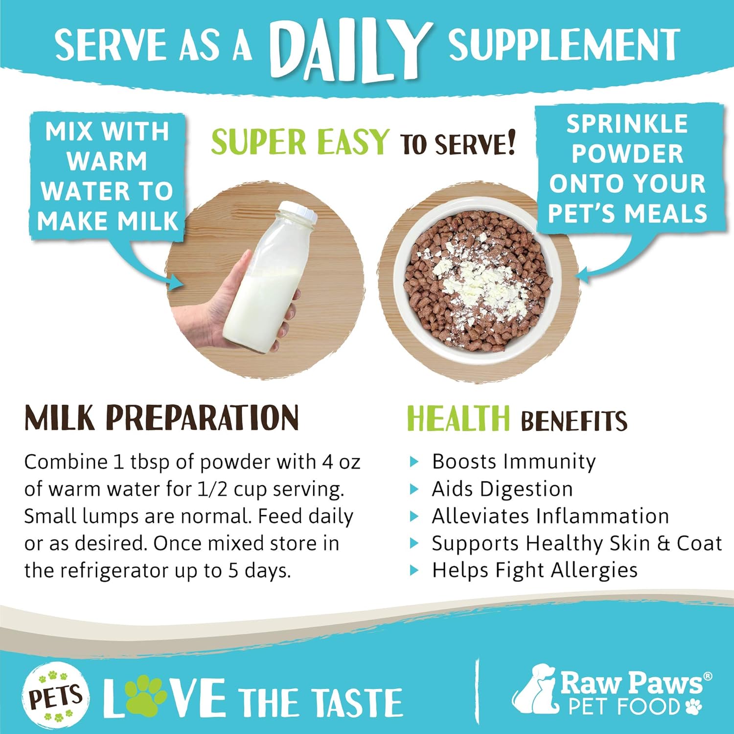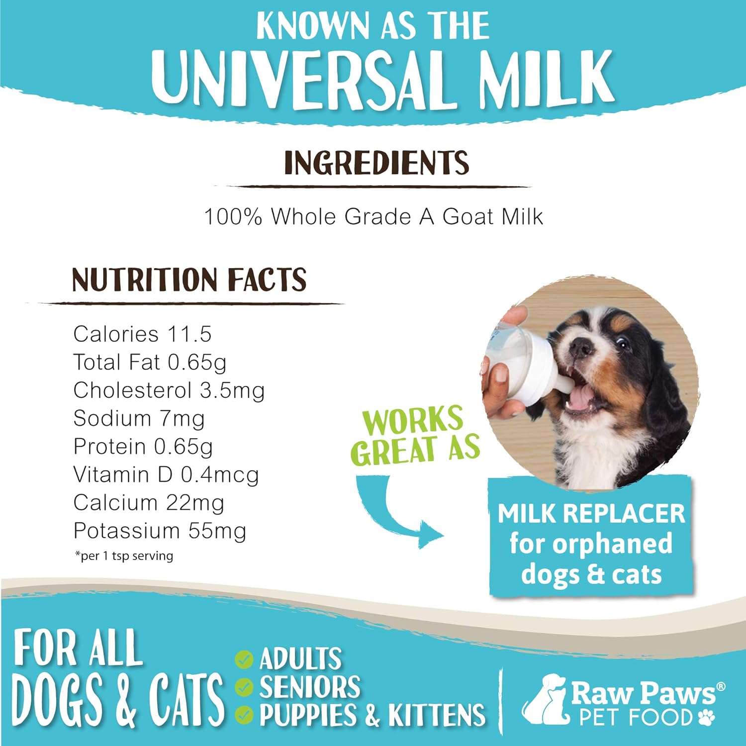 NUTRITIONAL & ALL-NATURAL DEHYDRATED GOATS MILK POWDER: Give your fur baby the same nutritional benefits of raw goat milk with our easy-to-store, easy-to-serve all-natural dry goats milk powder. Sprinkle dry whole powdered goat milk over pet’s food, or simply add water and serve as a highly digestible milk replacer for puppies and kittens. Pour over wet or dry food as a cat or dog food topper for added nutrition and flavor or offer daily as a stand-alone nutritional milk supplement.