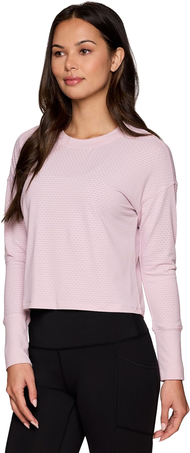 RBX Activewear Long Sleeve Mesh Running Top for Women, Quick Drying Breathable Mesh Crewneck Workout Tee for Yoga