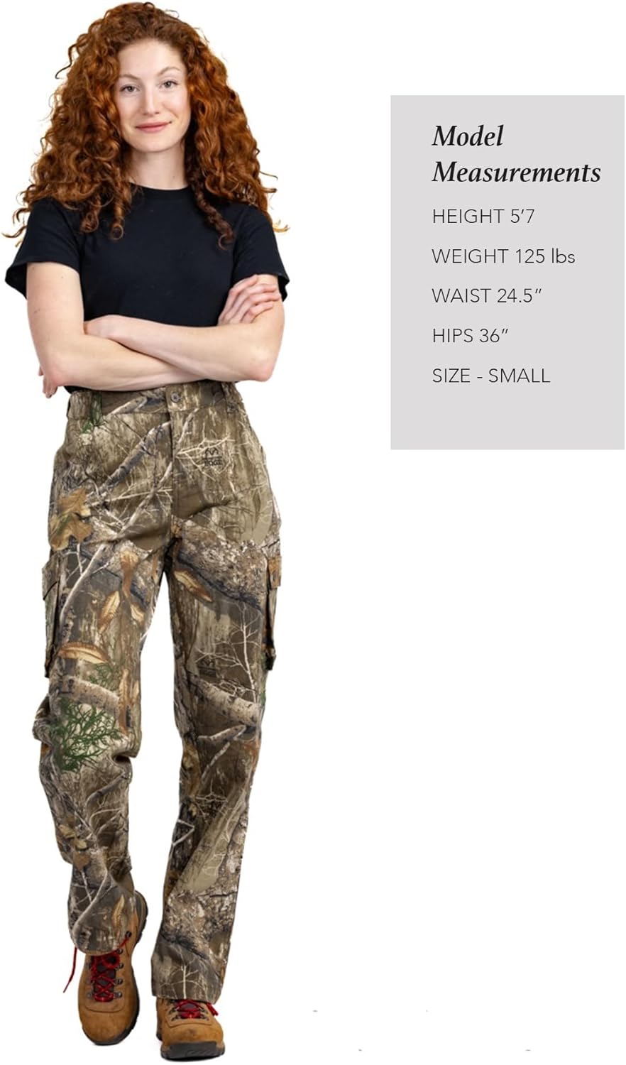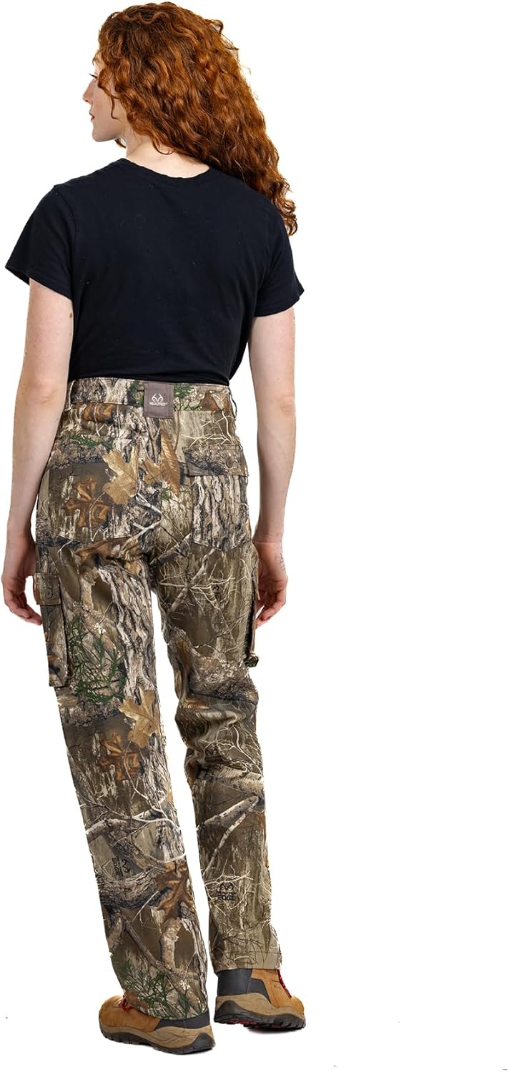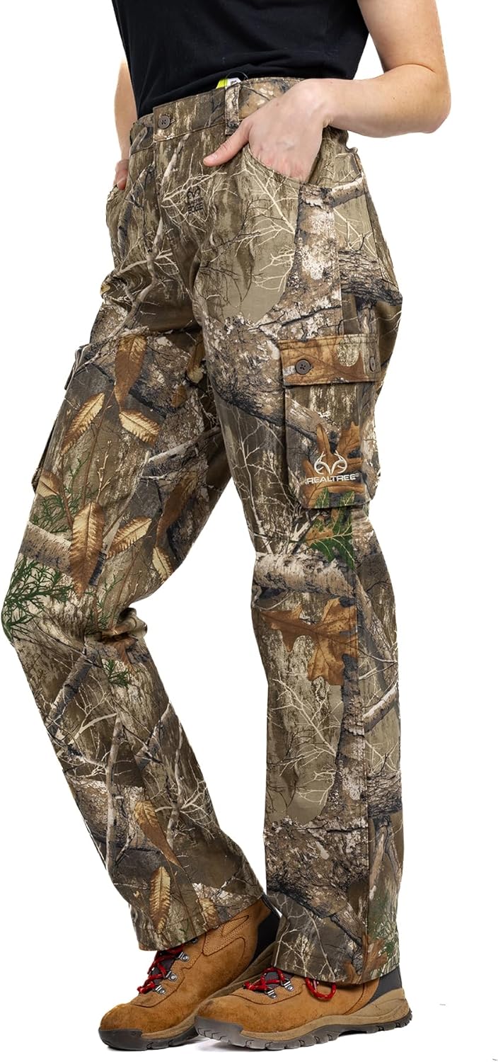 Realtree Camo High Waisted Cargo Women’s Pants, 6 Pockets, Cotton Ripstop, for Hunting, Hiking and Camping
