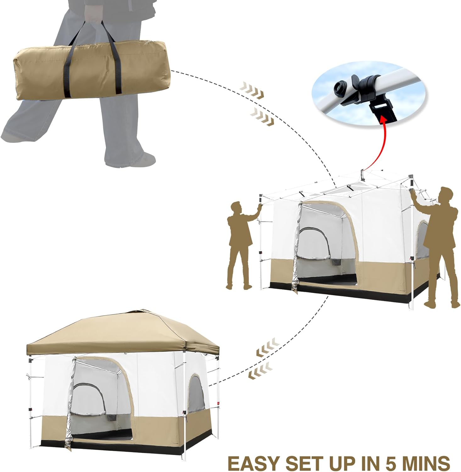 REDCAMP 10′ x 10′ Camping Cube Tent Portable Pop Up Canopy, Converts Straight Leg Canopy into Camping Inner Tent Square Tent with Full Floor (Canopy Frame/Shelter NOT Included), Khaki