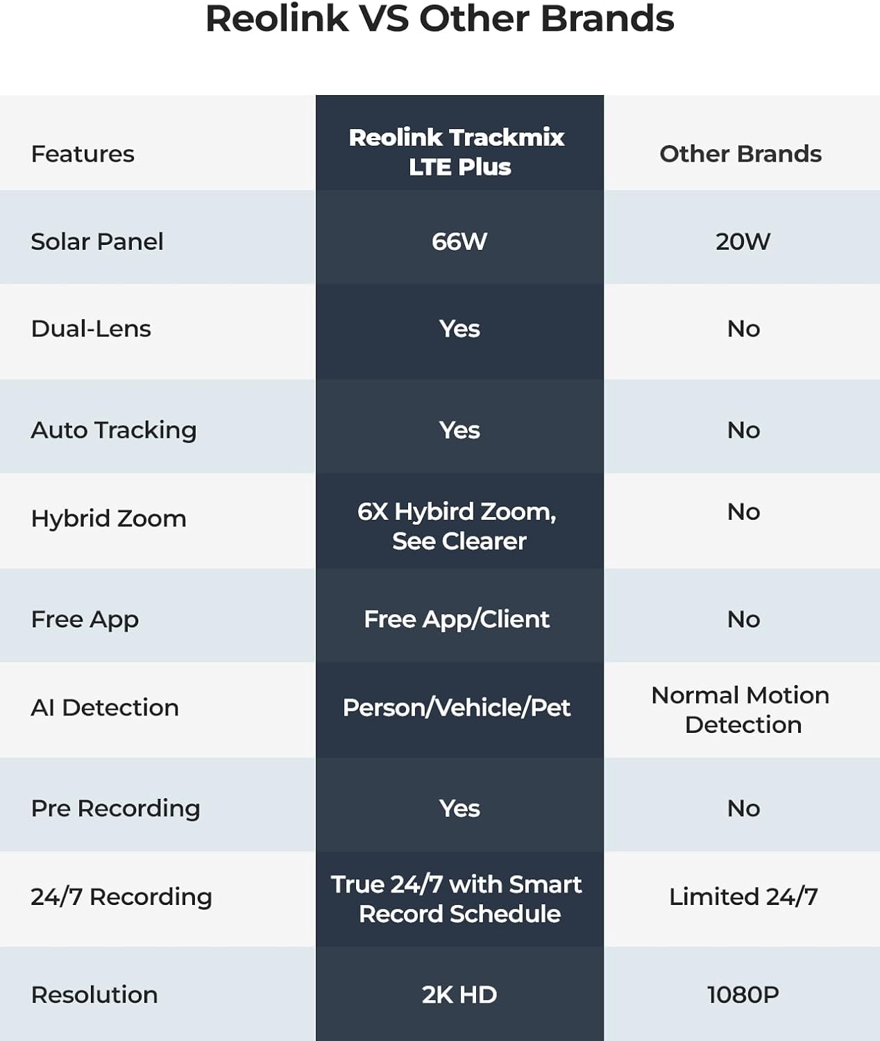 SMART DETECTION & INSTANT ACCURATE ALERT: With the on-camera technology of analyzing person and vehicle shapes, TrackMix LTE Plus offers accurate detection, which greatly reduces false alarms. When motion is detected, the camera will immediately alert you in multiple ways.