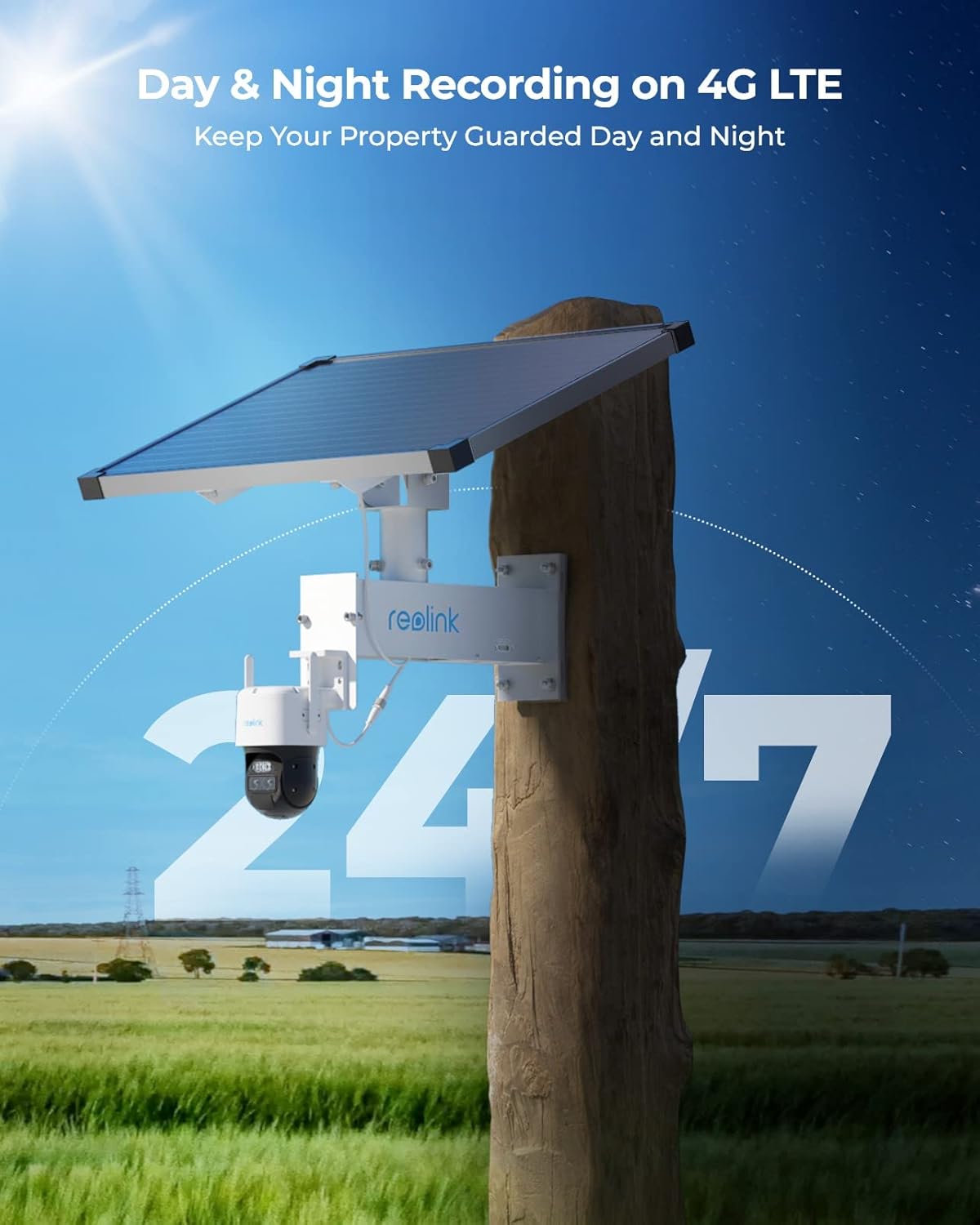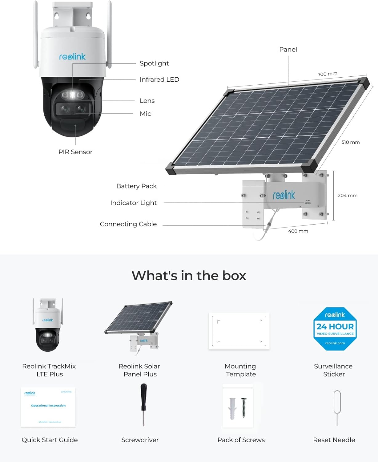 REOLINK 24/7 Cellular Security Camera Outdoor, No WiFi Needed, 66W Solar Panel, Auto Tracking/Zoom, 2K PTZ Camera with Color Night Vision, Smart Detection, Local/Cloud Storage, TrackMix LTE Plus