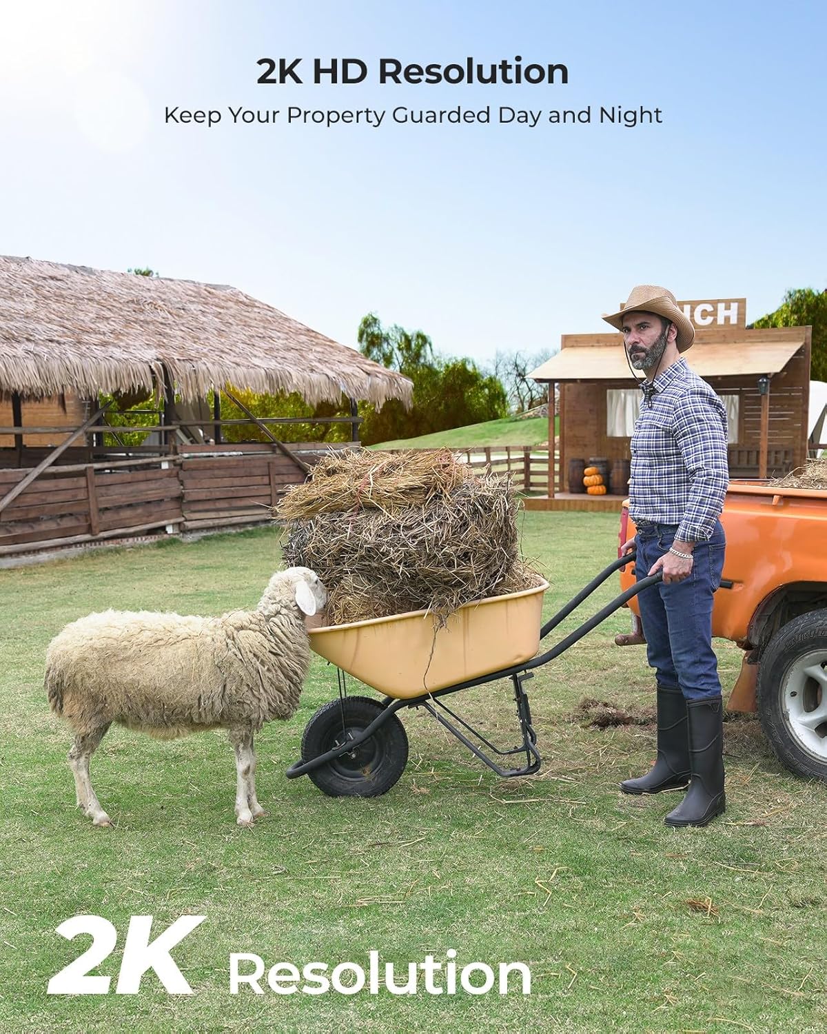 2K HD & COLOR IMAGES DAY AND NIGHT: The 2K 4MP resolution enables you to see images with super clarity and the finest details. Never miss any tiny details at night with color night vision. Ideal for your buildings, large farms and ranches, docks and ports, and construction sites.